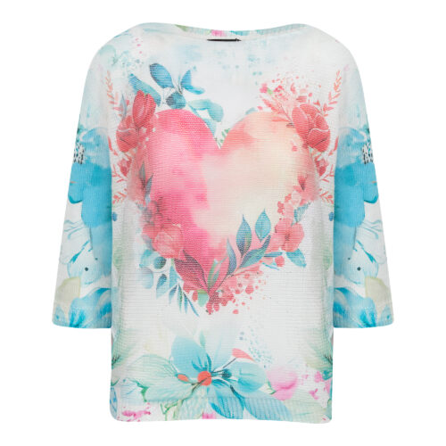 Ladies Heart Print Knitwear Jersey - Pink/col, M/l