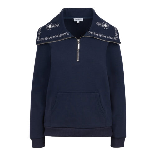 Ladies Embroidery Detail Active Knit Top - Navy, 2xl