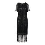 Lds Short Sleeve Sequinned And Tassle Knit Dress - Black, 10