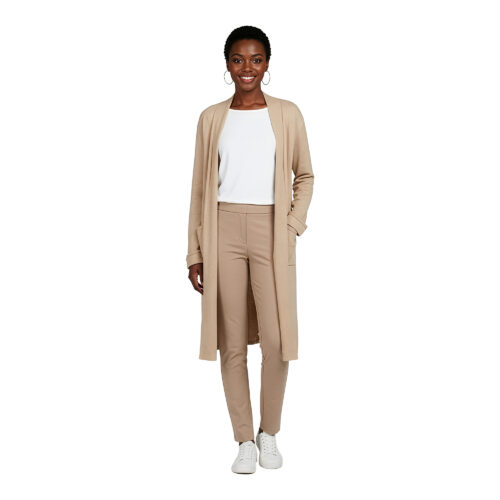 Lds Longer Length Mélange Core Knitwear Cardigan - Natural, L