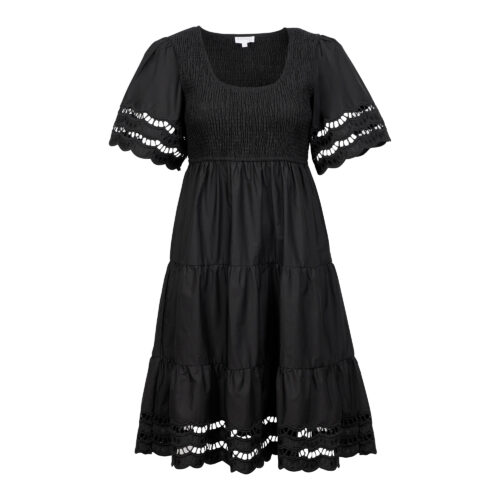 Shirred & Embroidered Detail Woven Dress - Black, 16