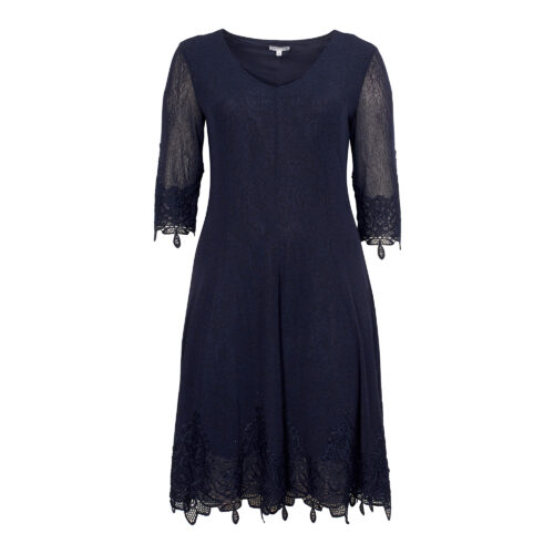 Fit&flare Lace Trim Knit Dress - Navy, 20
