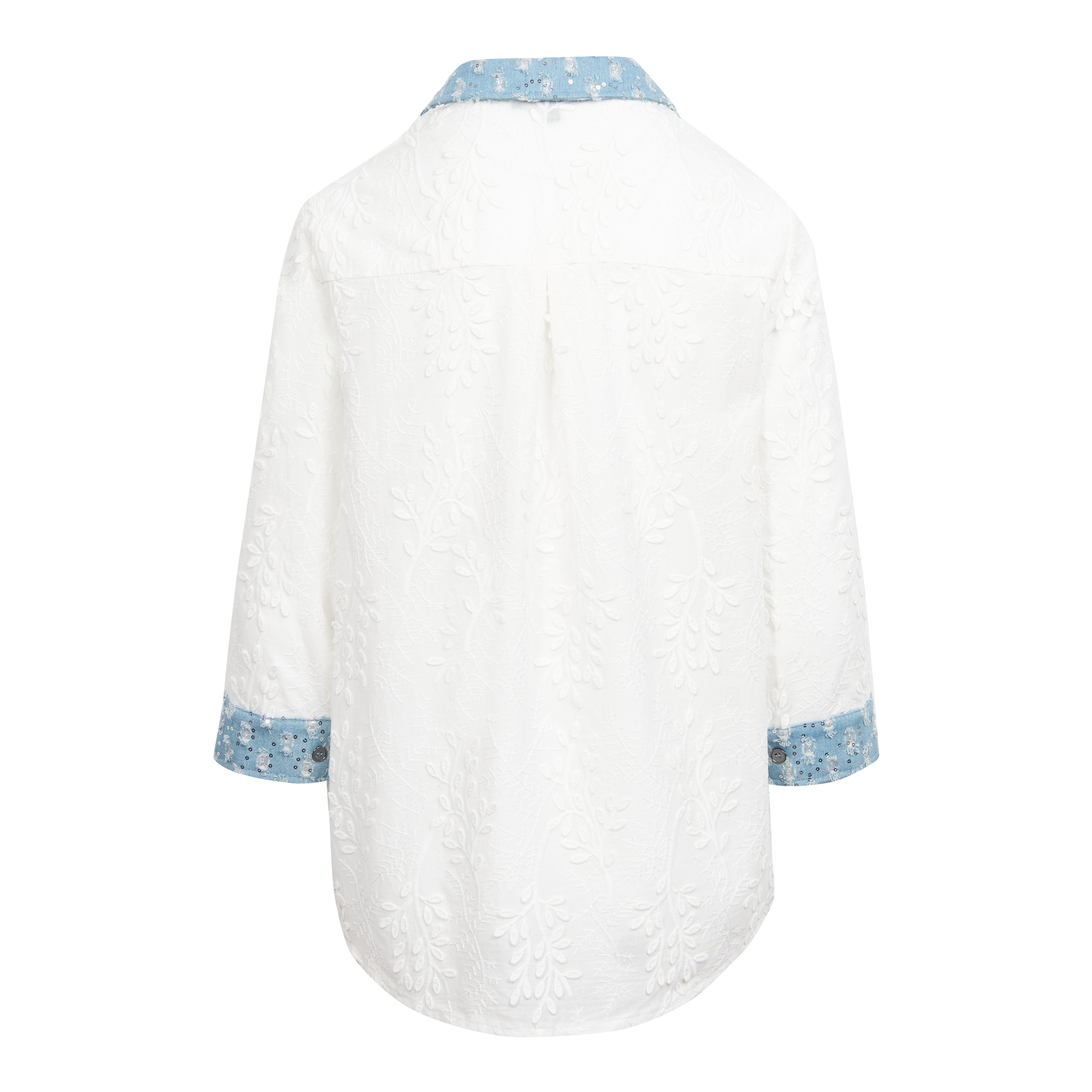 Embroidered Sequin Denim Combo Woven Shirt quantity