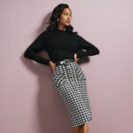 Lds Houndstooth Knitwear Skirt - Black/Col