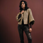 Lds Lurex Volume Sleeve Woven Jacket - Gold