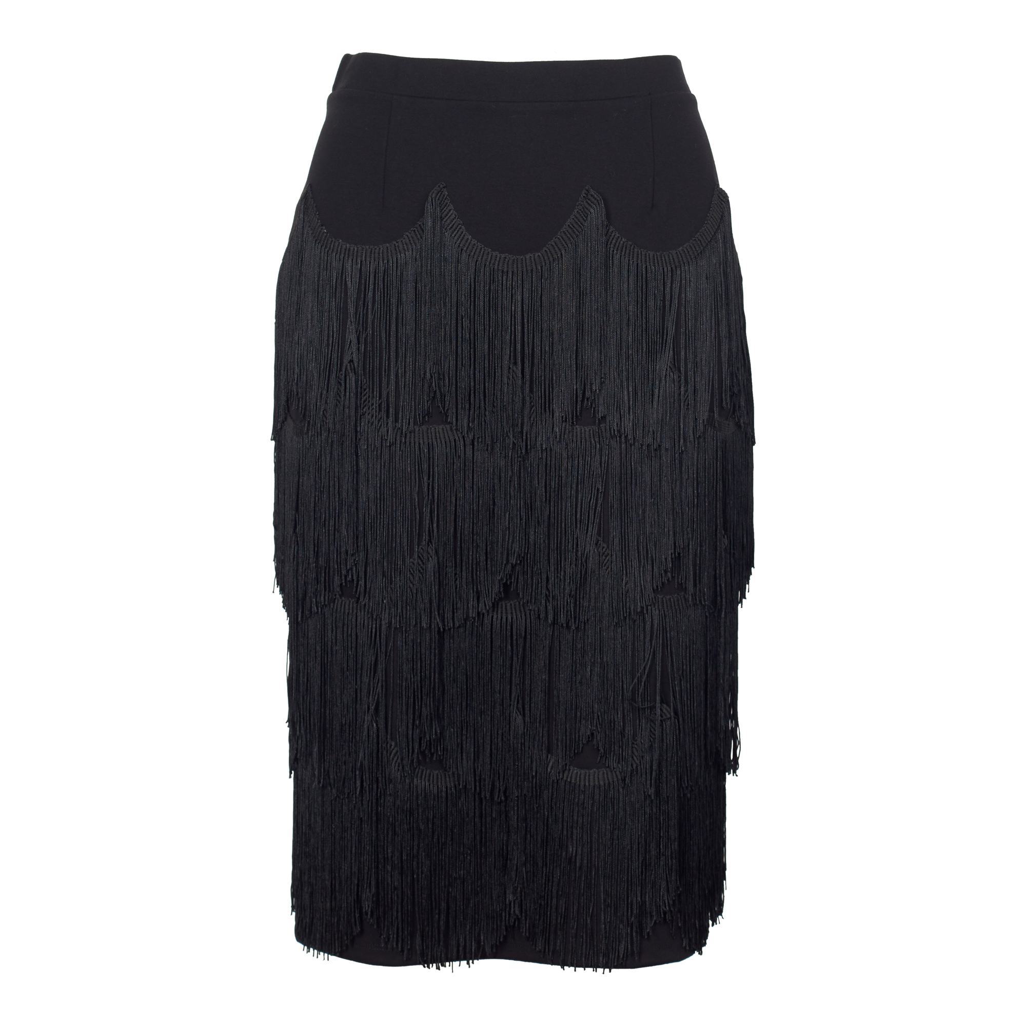 Scalloped Fringed Ponte Knit Skirt