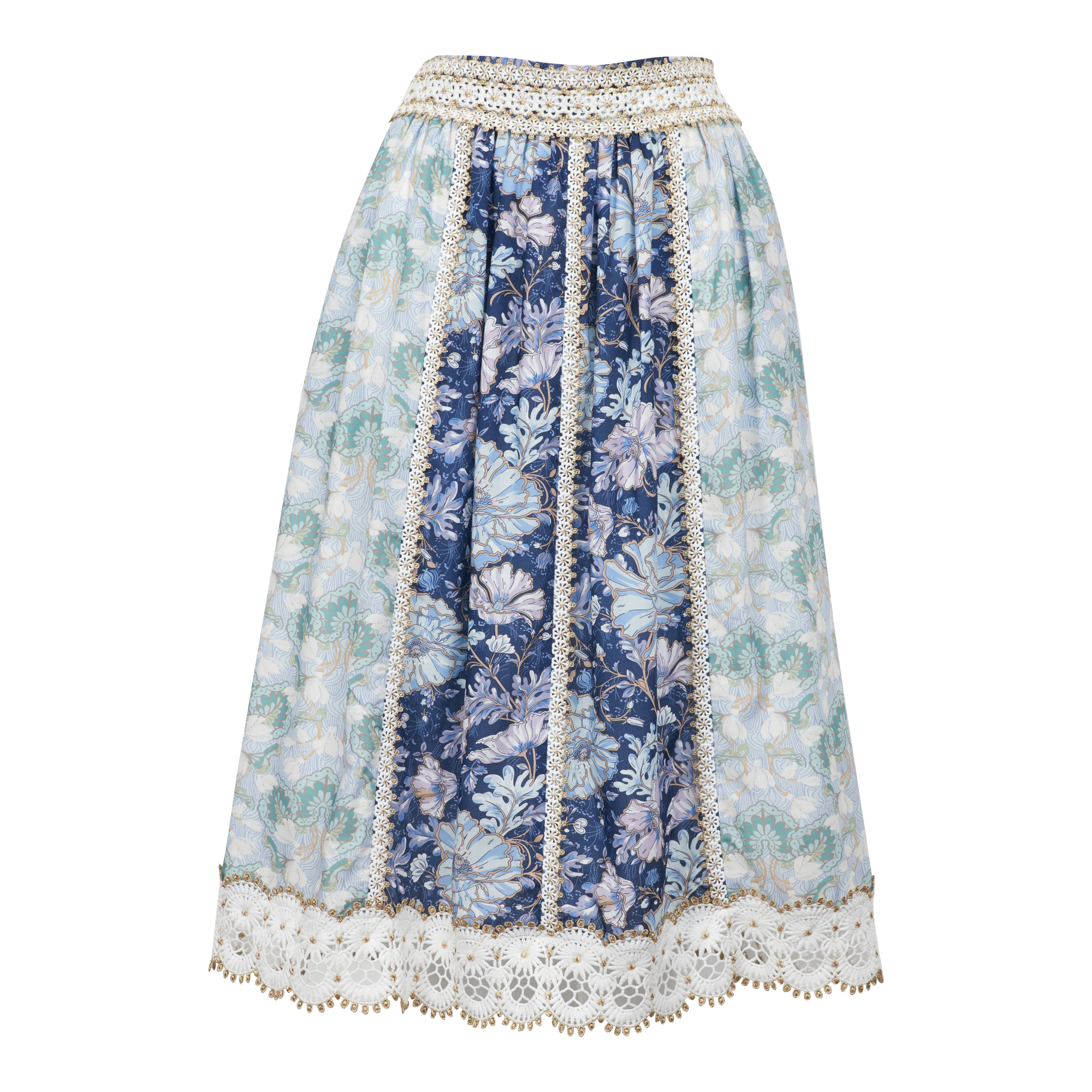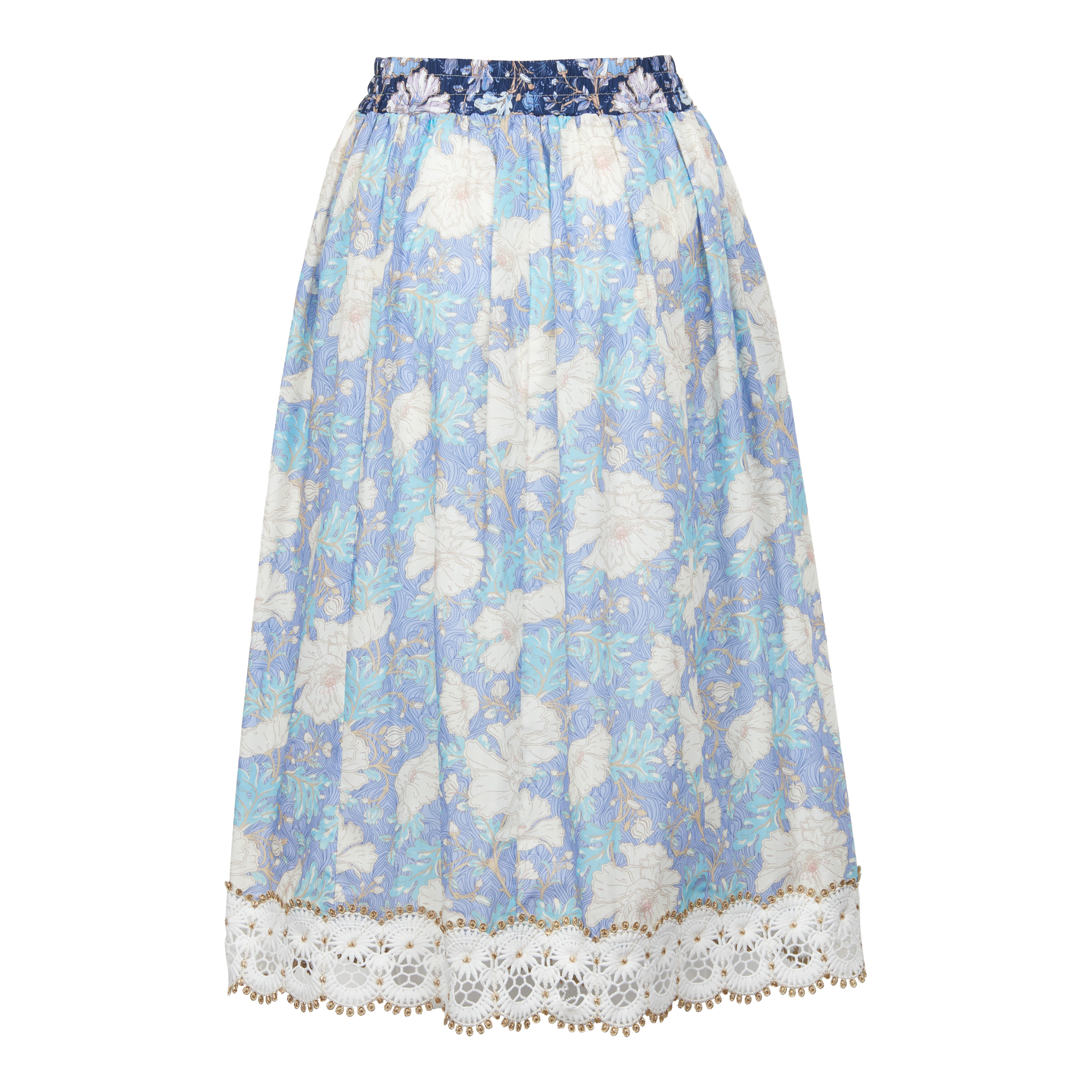 Ladies Floral Printed Lace Trim Woven Skirt quantity