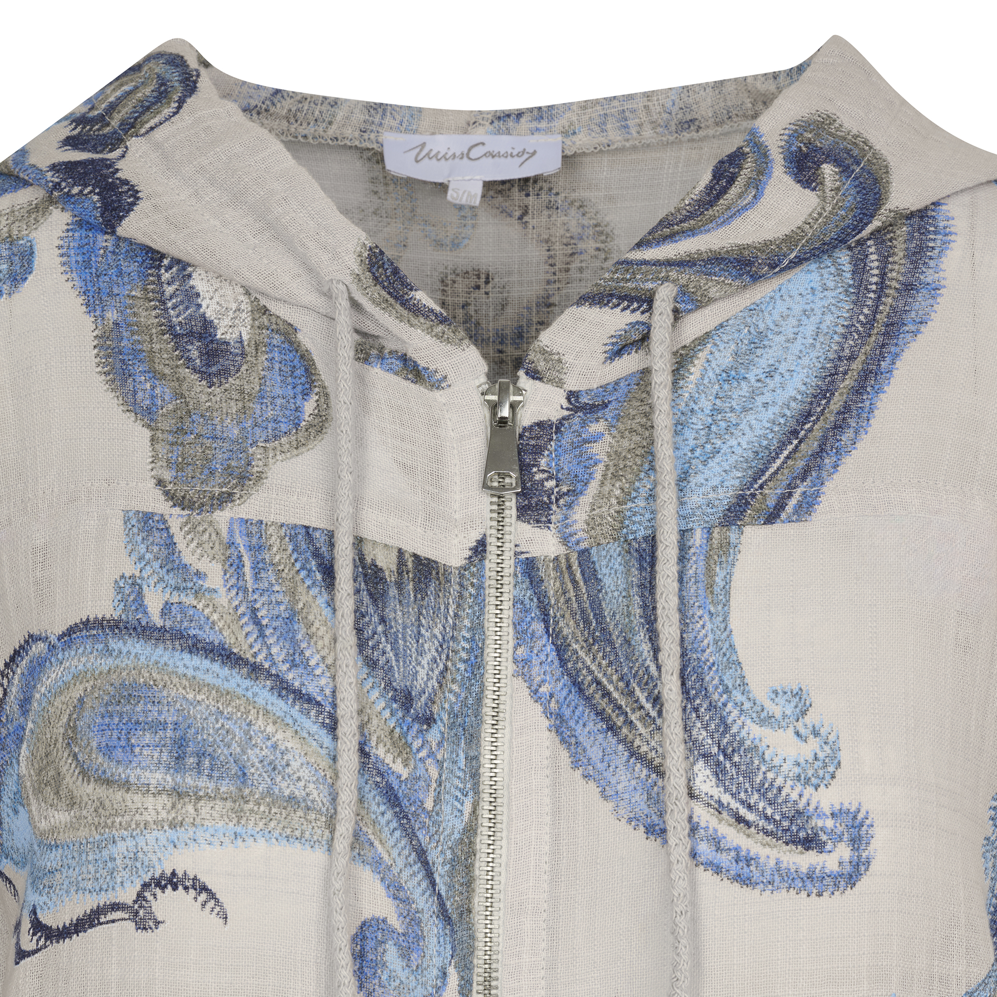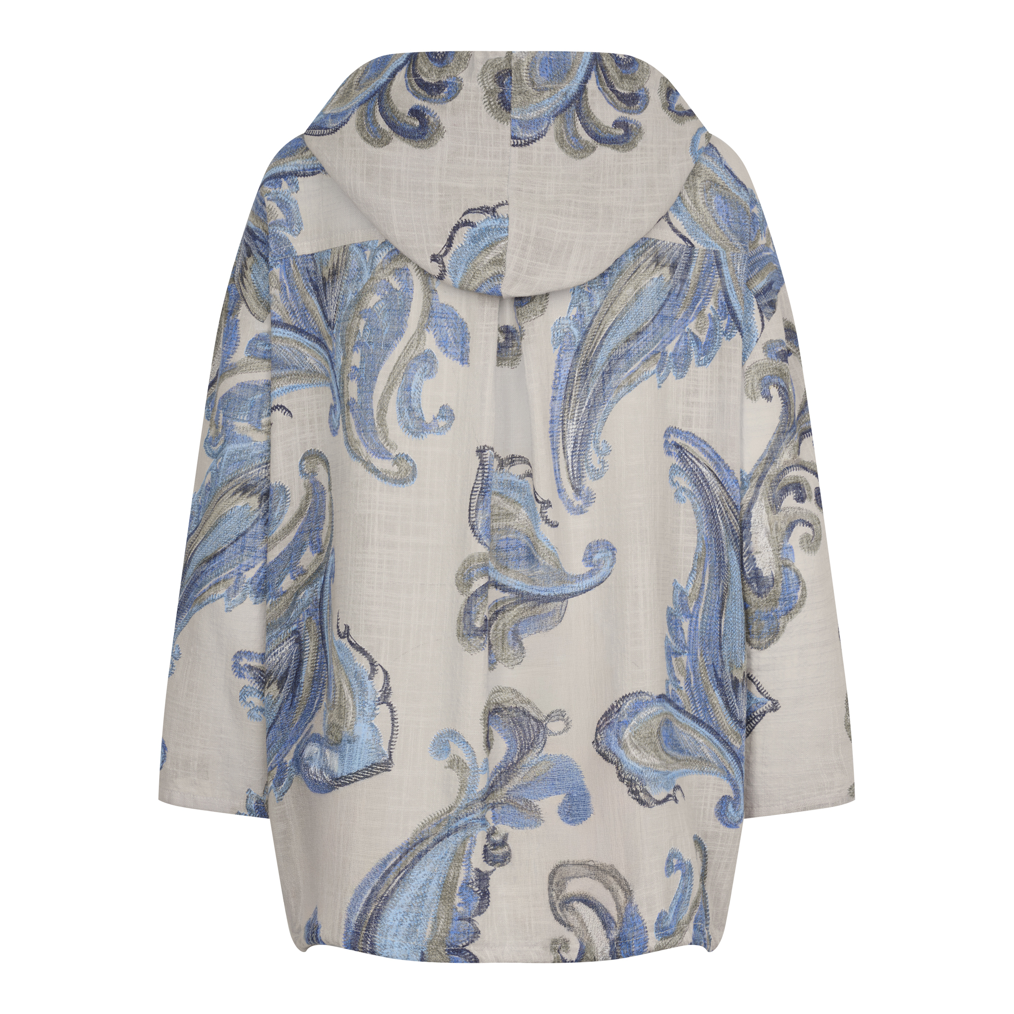 Lds 3/4 Sleeve Printed Woven Jacket With Hood