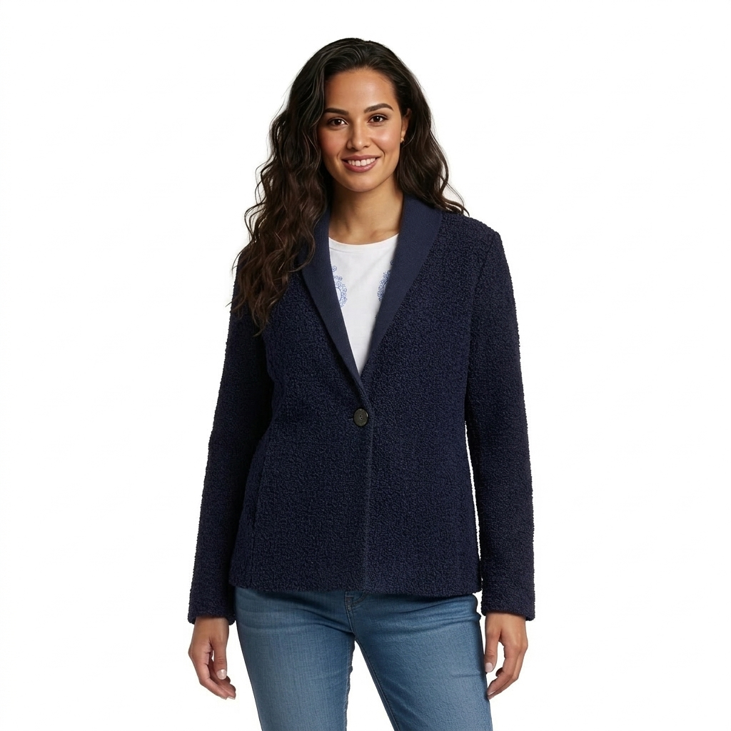 Ladies Boucle Zip Woven Jacket - Chocolate