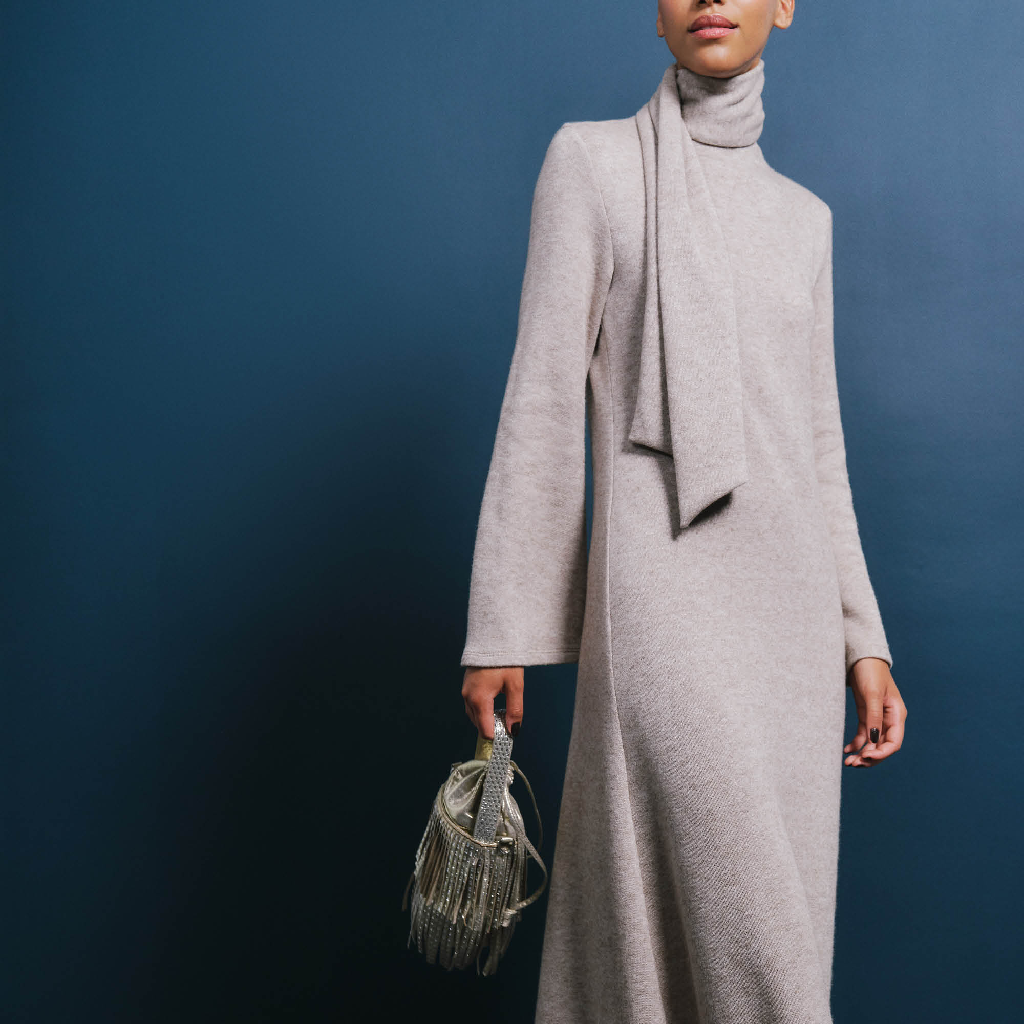 Lds 3/4 Double Bell Sleeve Shift Knit Dress - Black