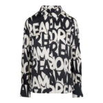 Ladies Printed Letters Satin Woven Shirt - Black/Col