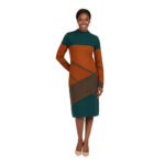 Ladies Jacquard Design Knitwear Dress - Green/Col
