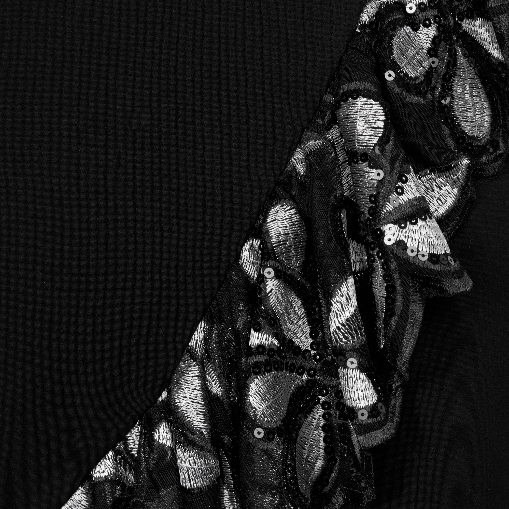 Lds 3/4 Sleeve Sequinned Knit Dress - Black