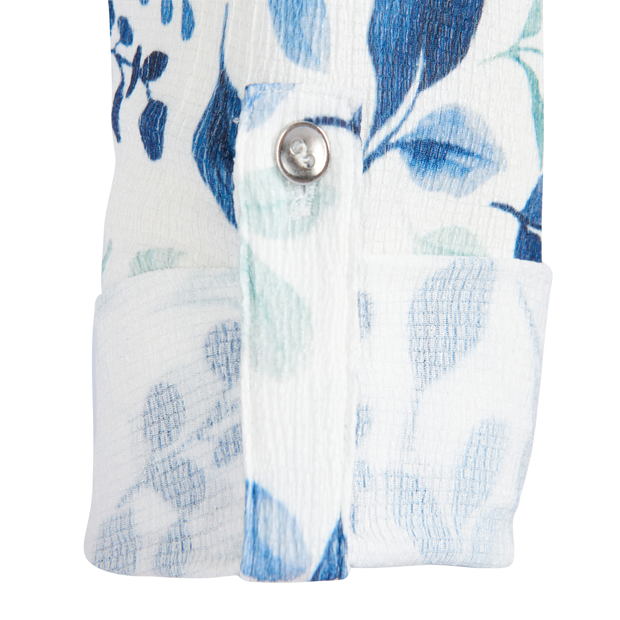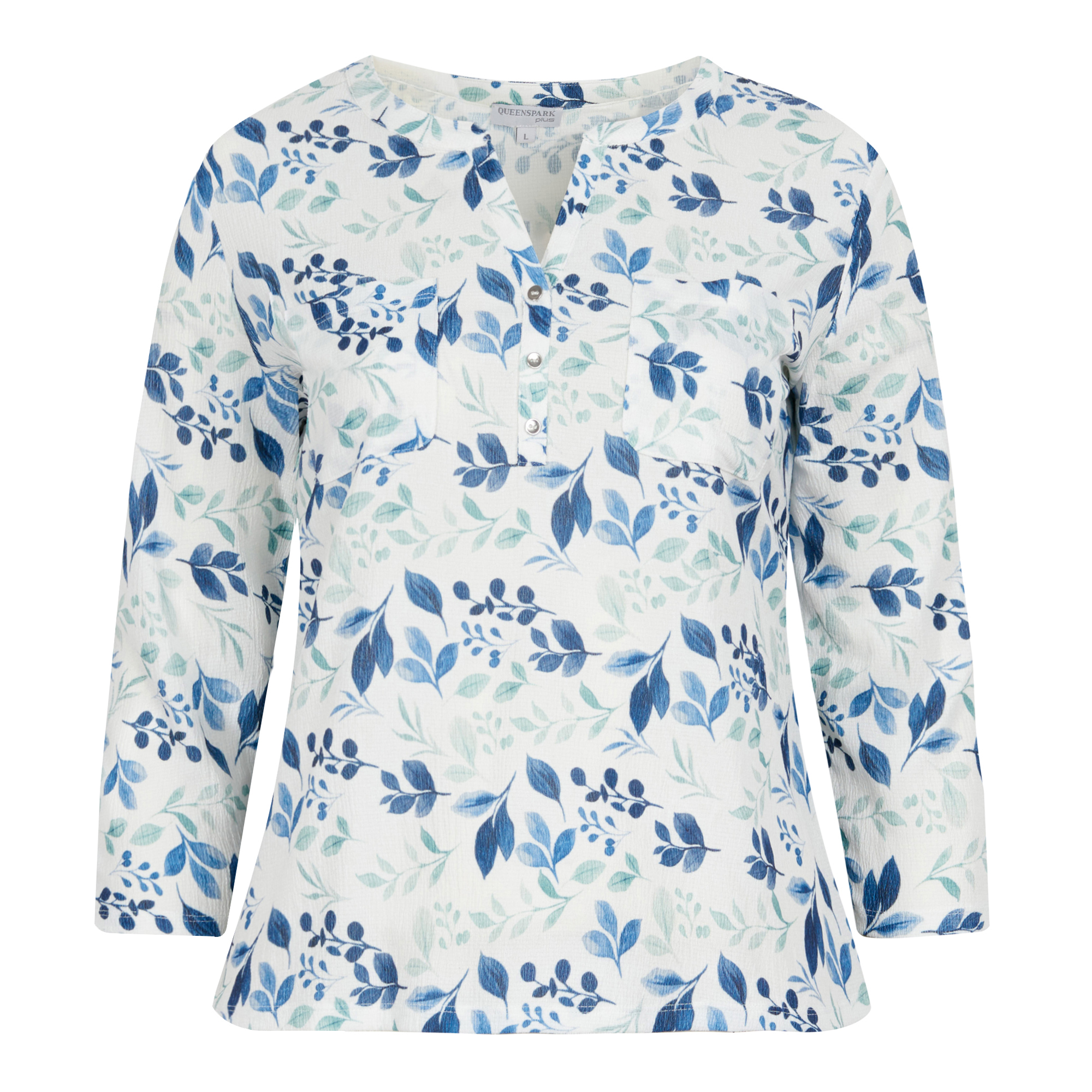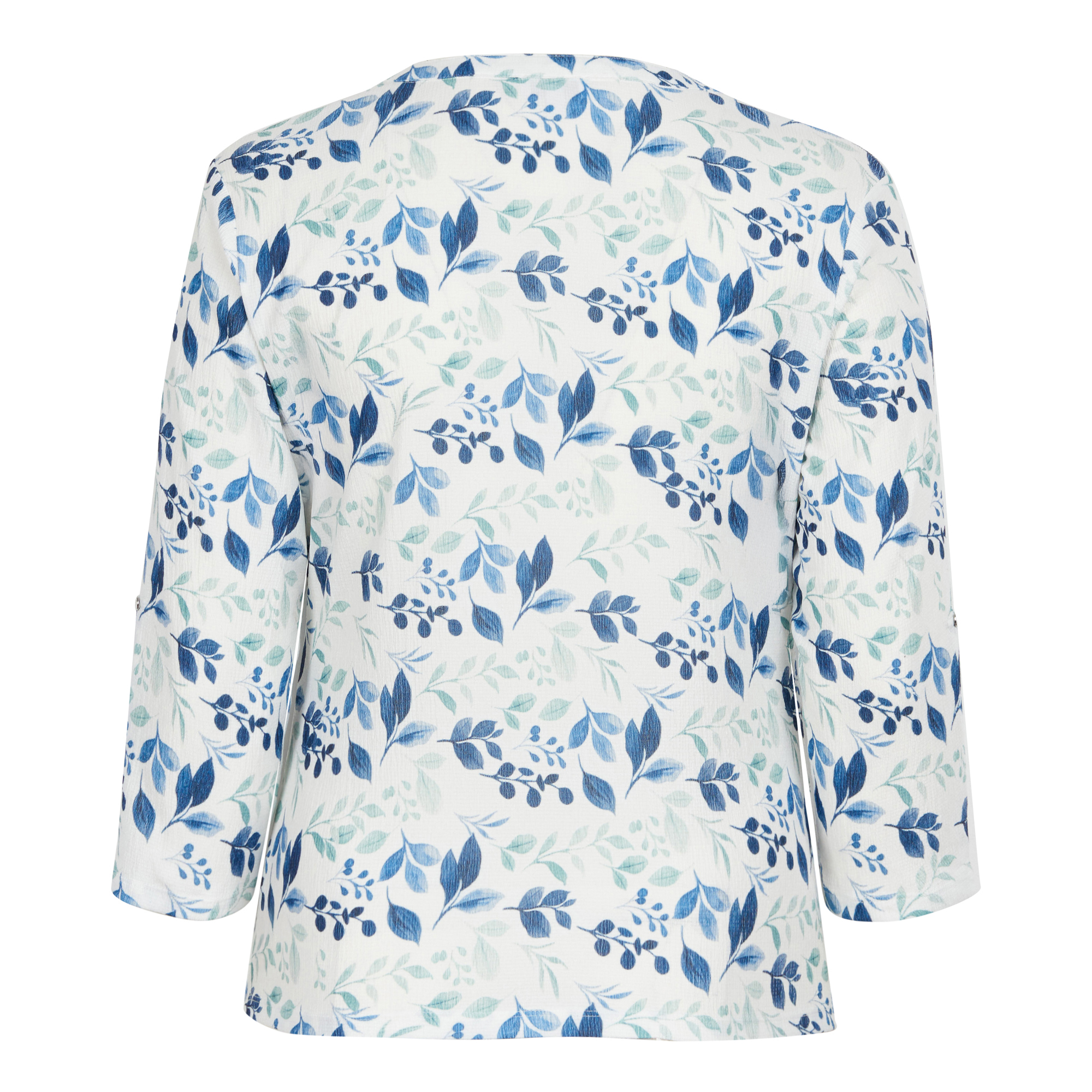Ladies Crinkle Knit Leaf Print Top - White/Col