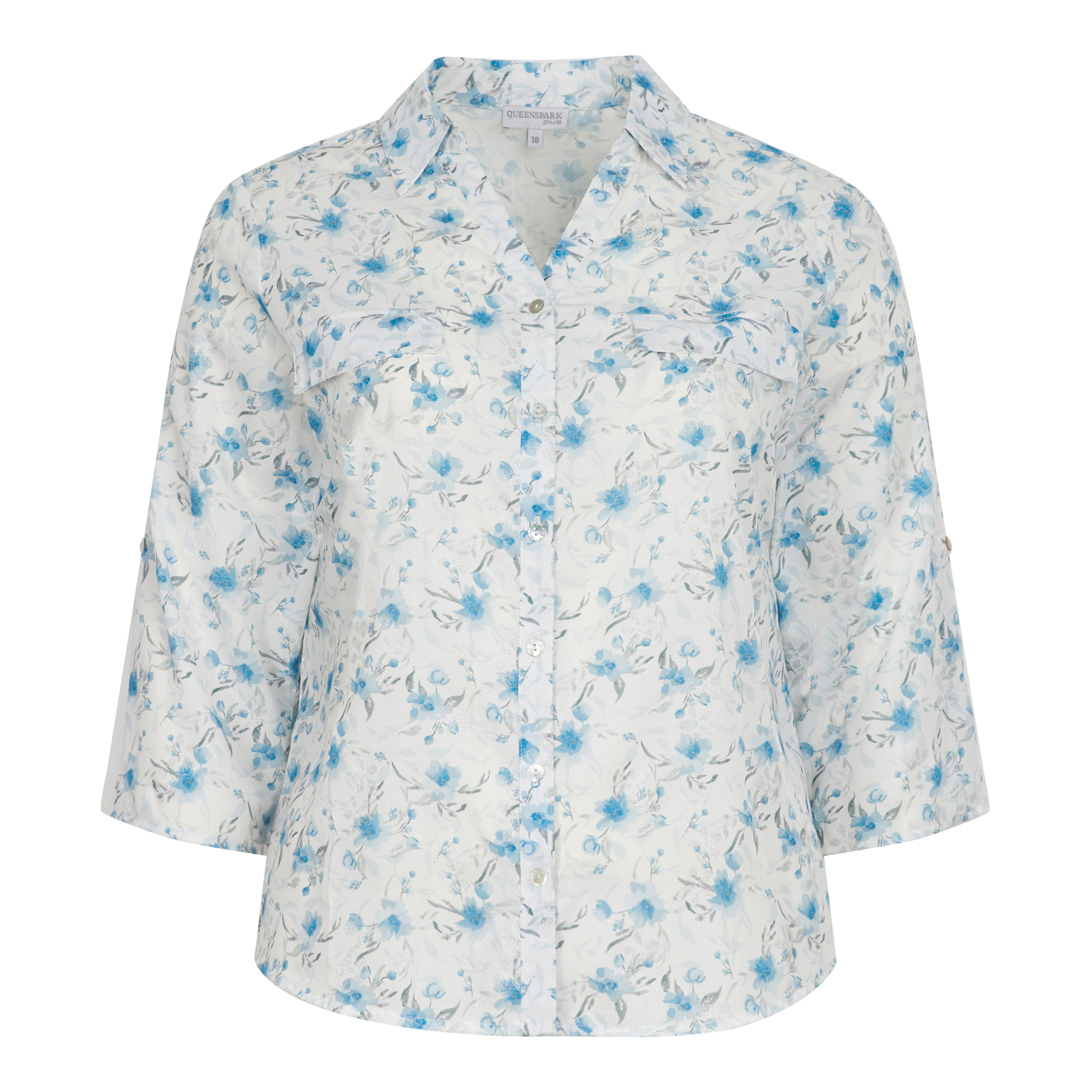 Ladies Floral Glitter Printed Woven Shirt quantity