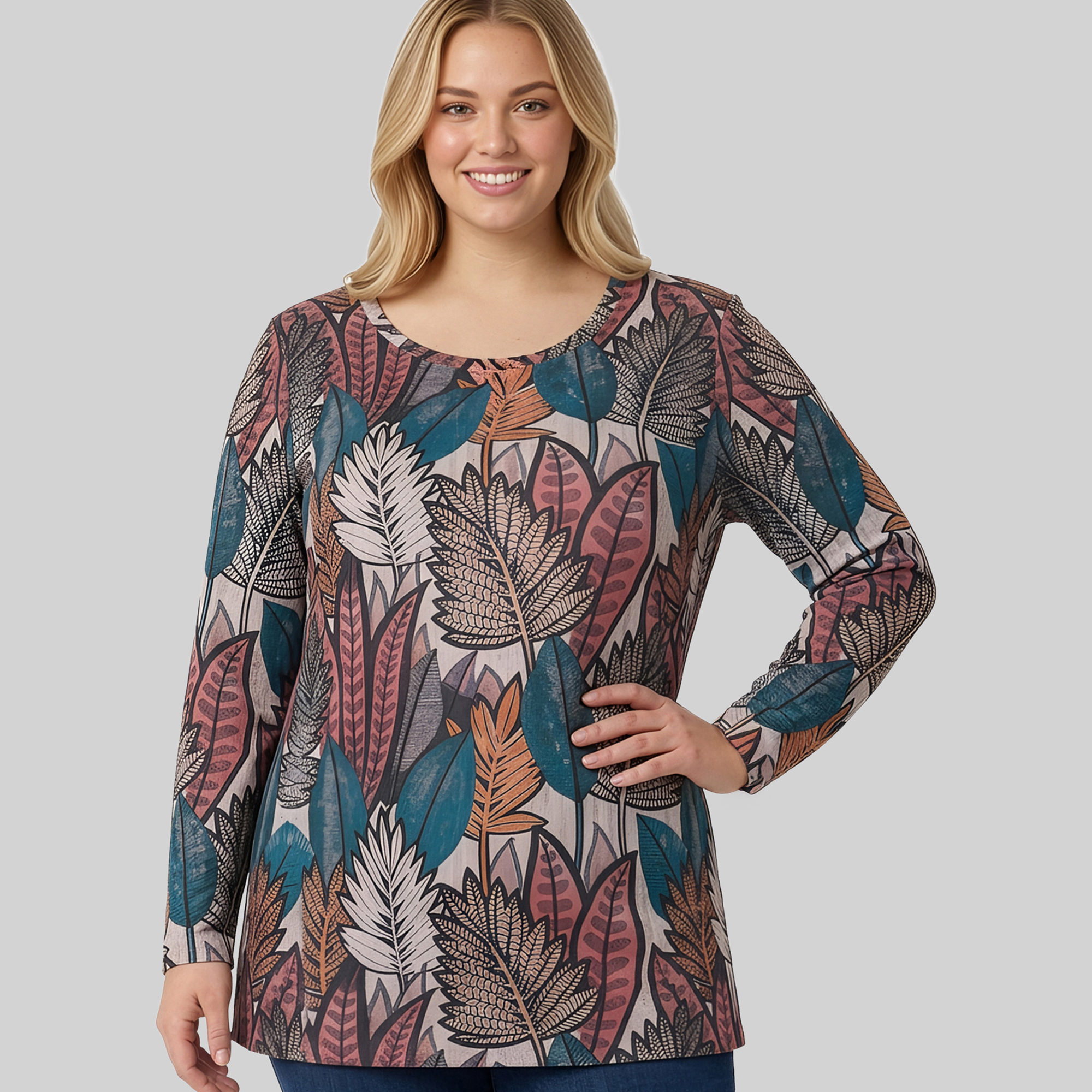 Ladies Leaf Printed Knit Top