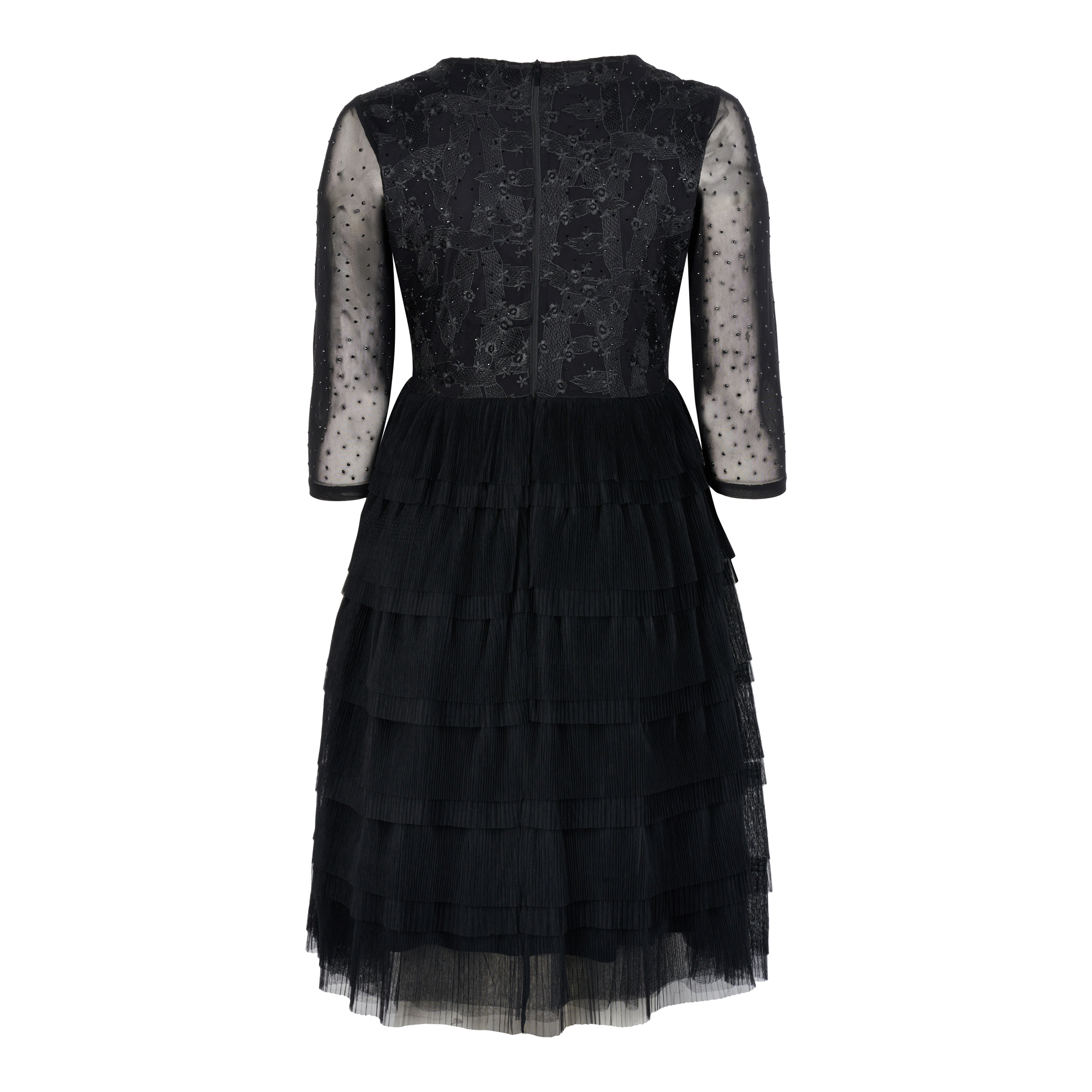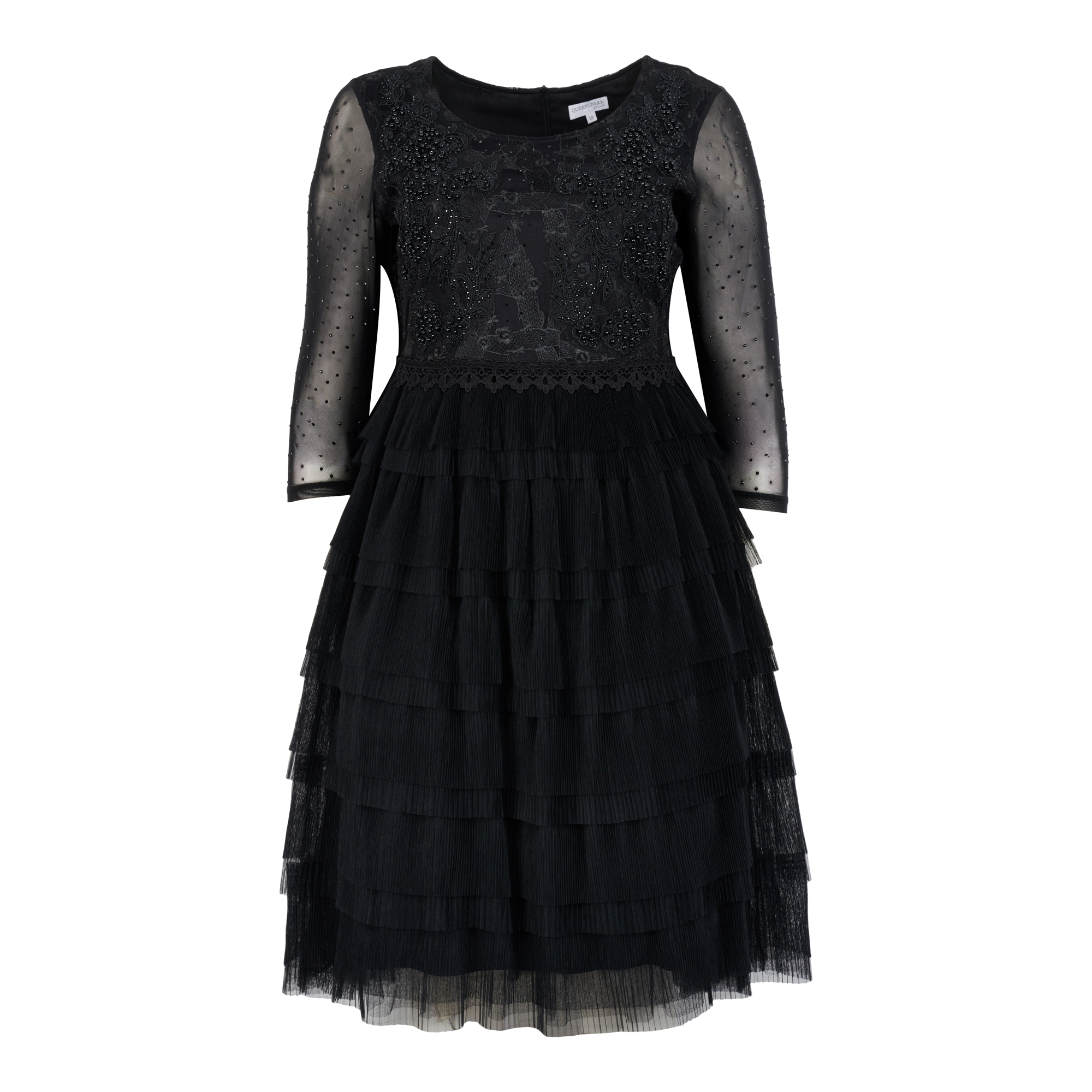 Ladies Multi Tiered Embroiderd & Mesh Knit Dress