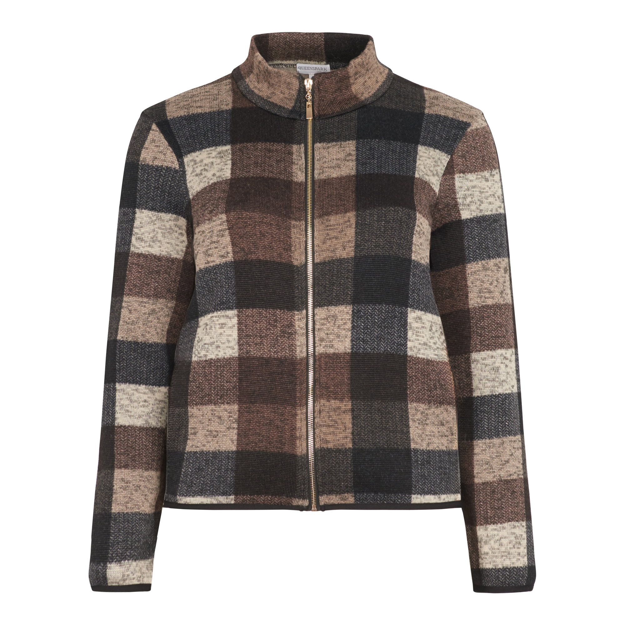 Ladies Short Check Printed Knit Jacket