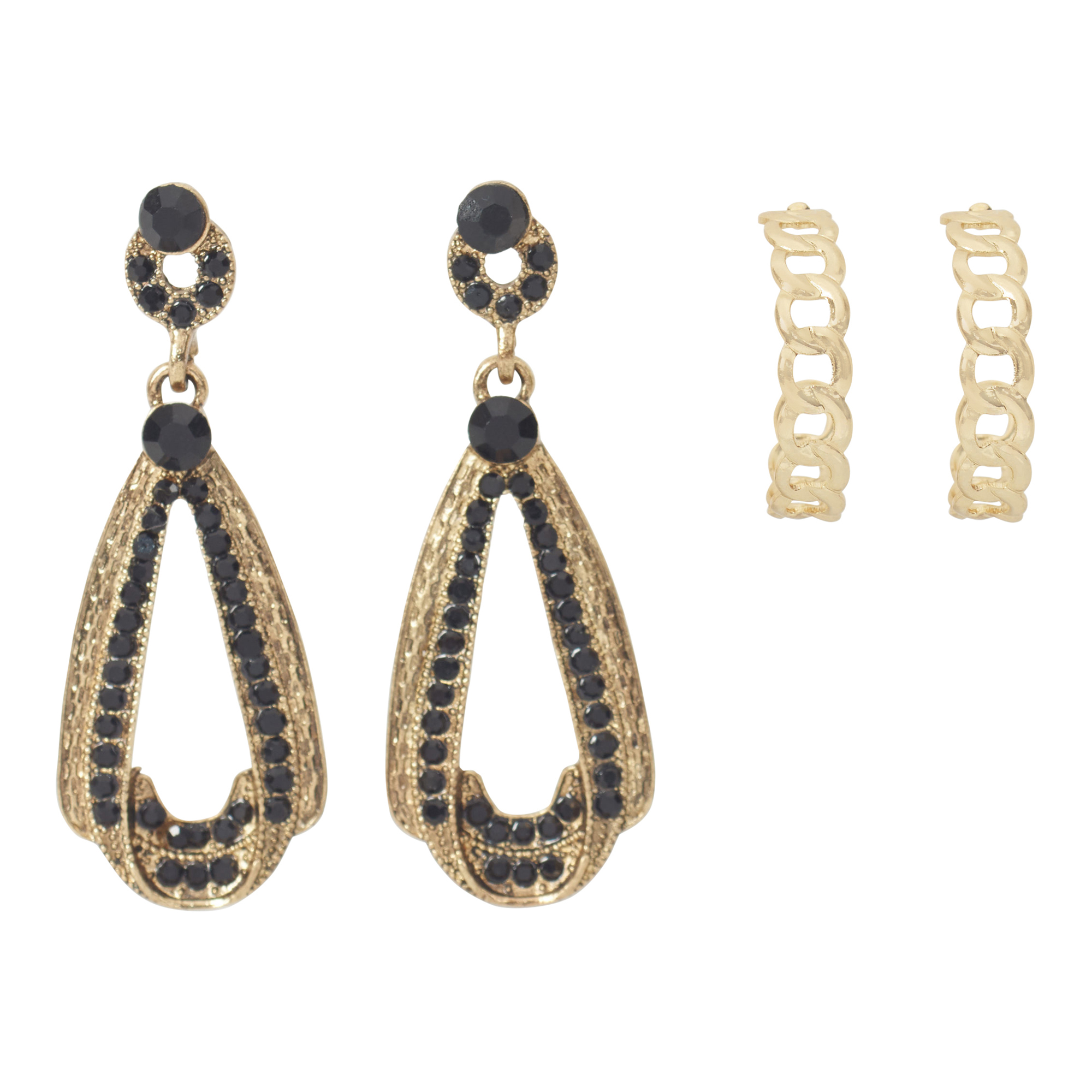 Lds 2pk Marquisite Drop Earring - Black/Col