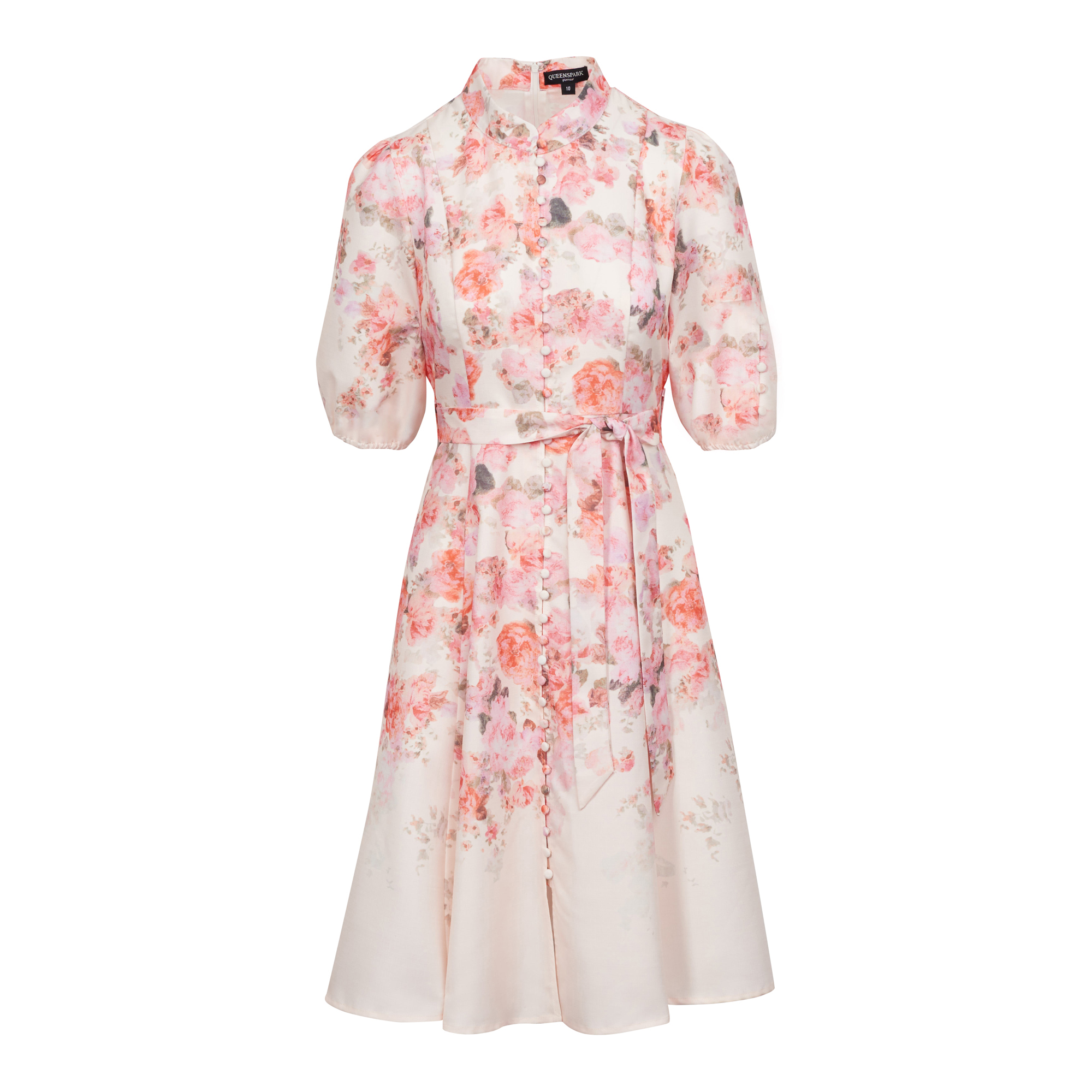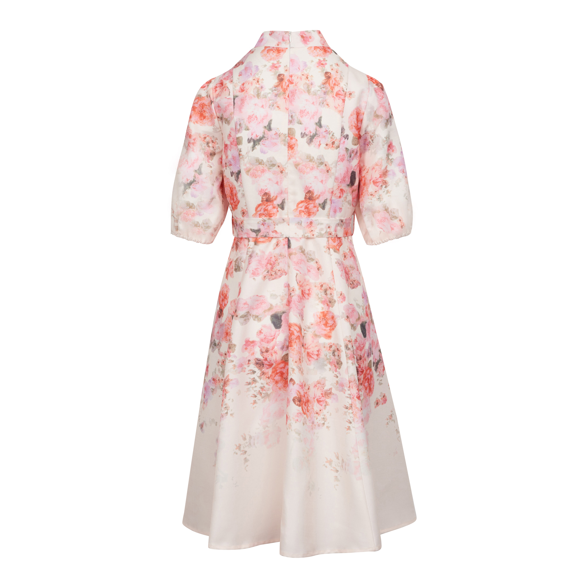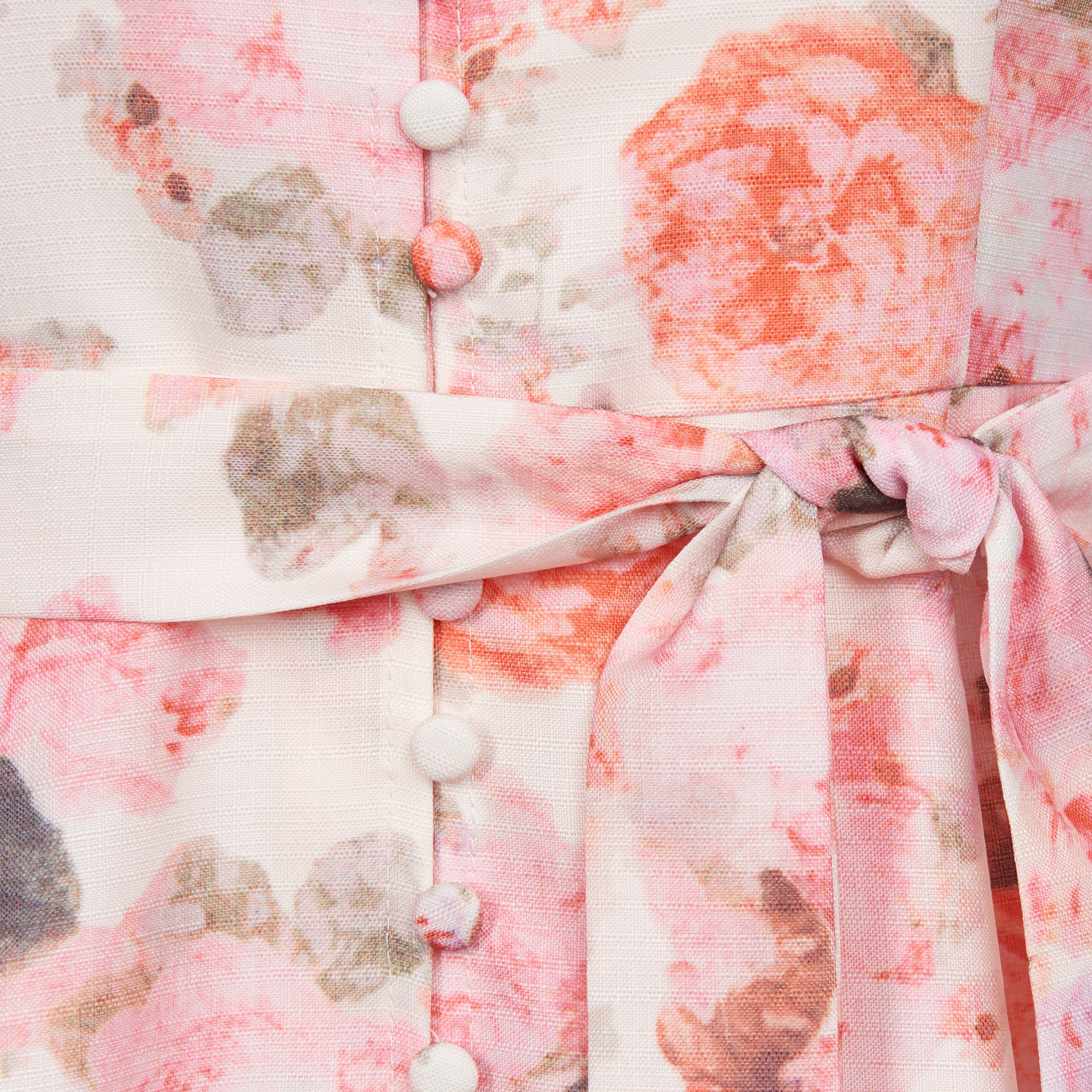 Ditsy Shirred Bodice Woven Dress - Red/Colour