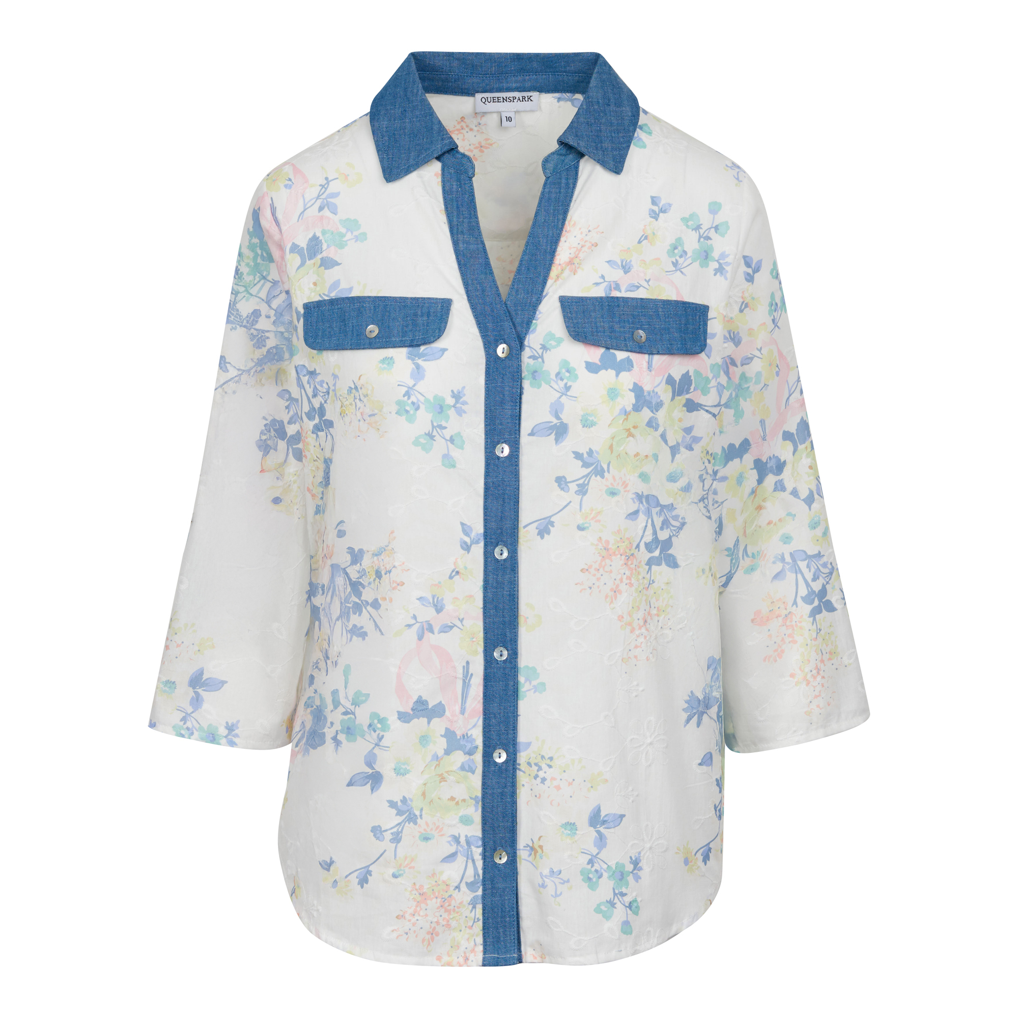 Anglaise Printed Denim Trim Woven Shirt