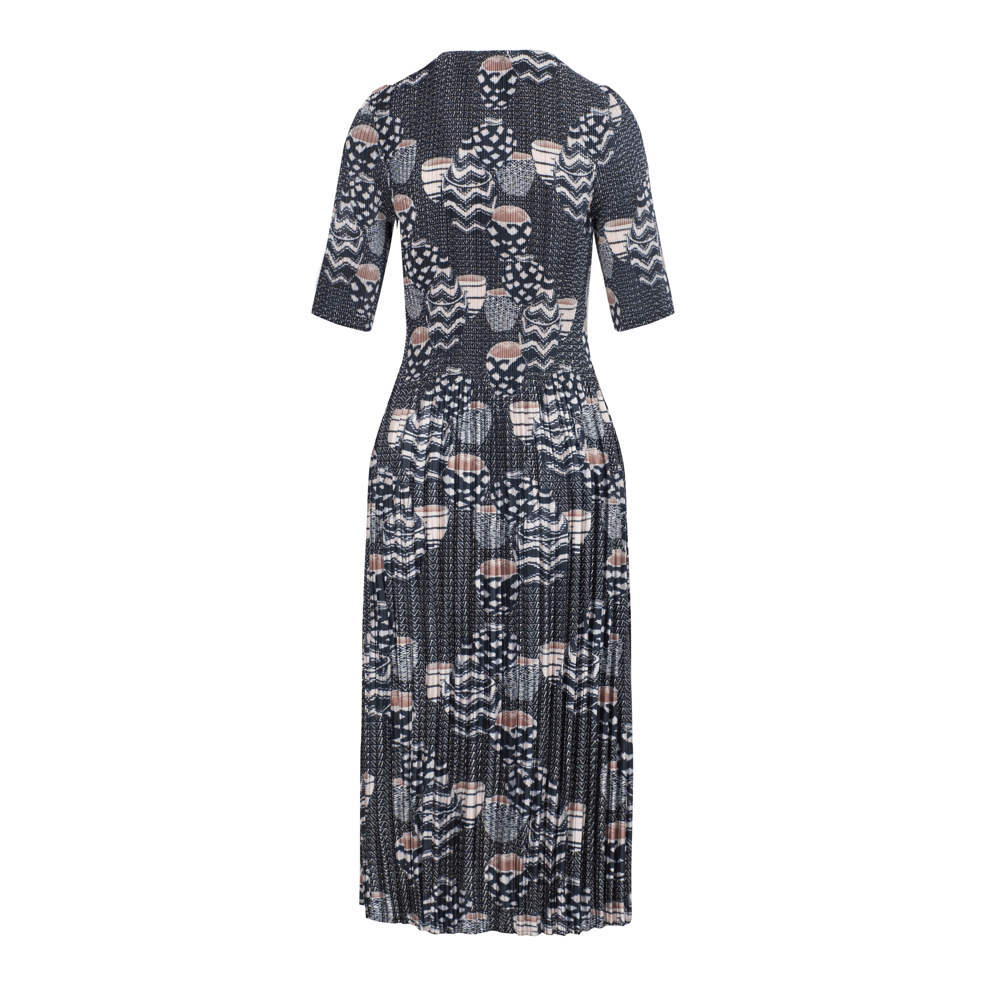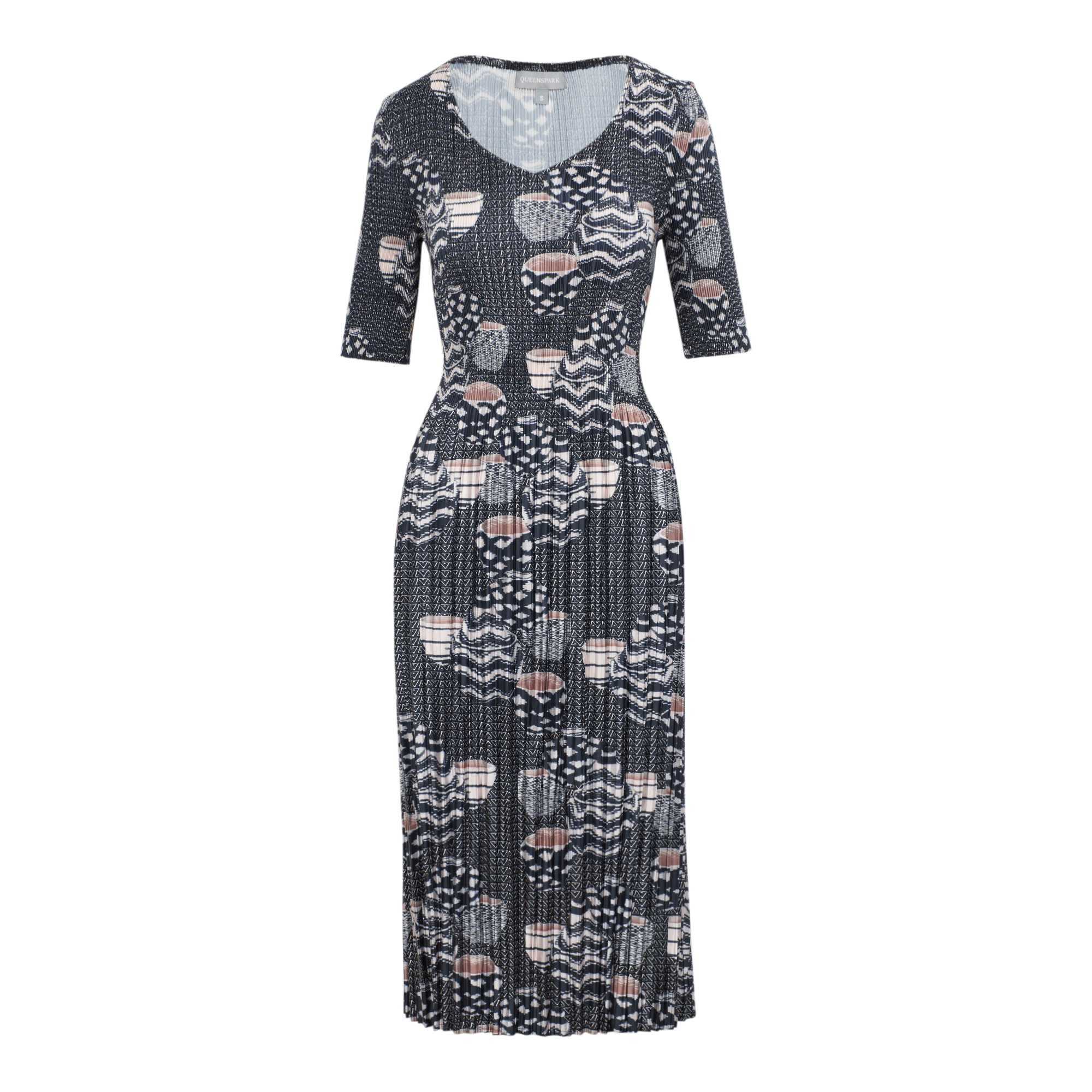 Ladies Basket Print Pleated Woven Dress
