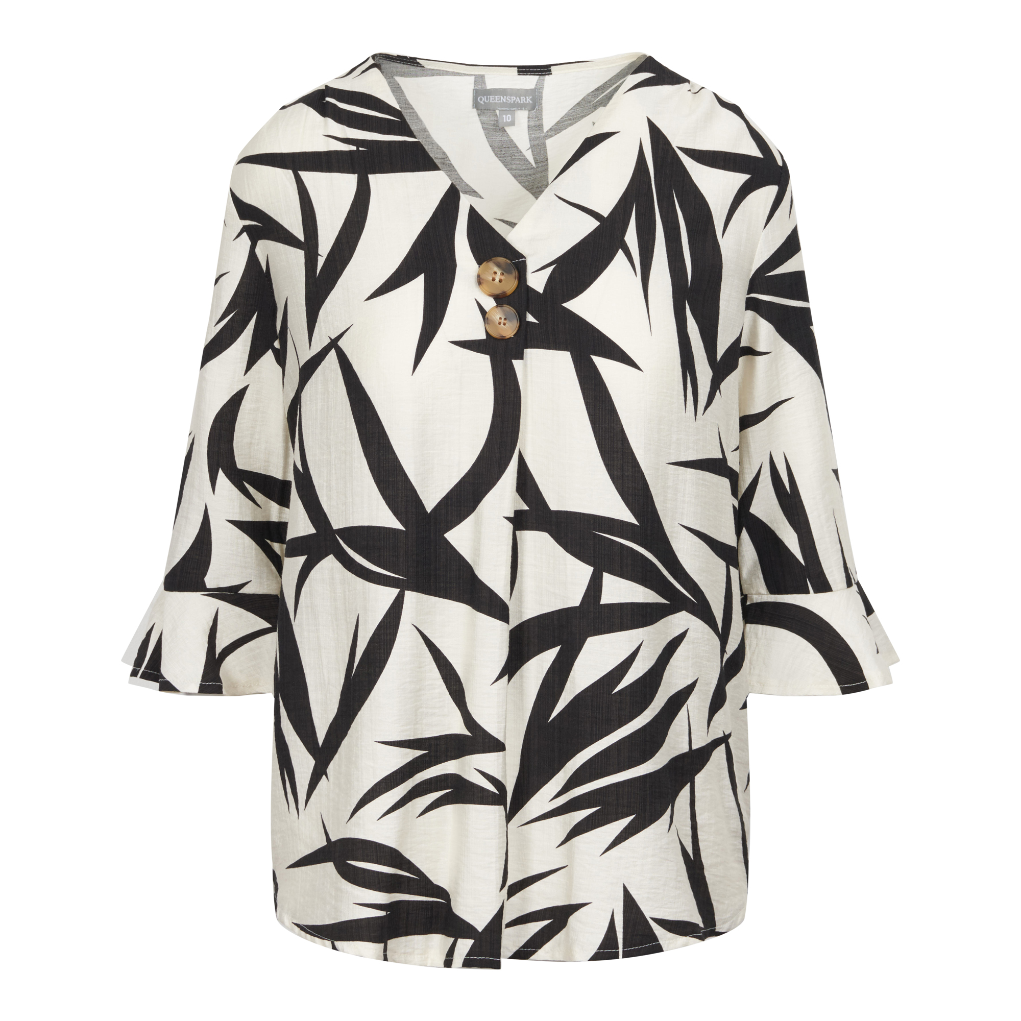 Lds Printed Button Through Woven Shirt - Black/Col