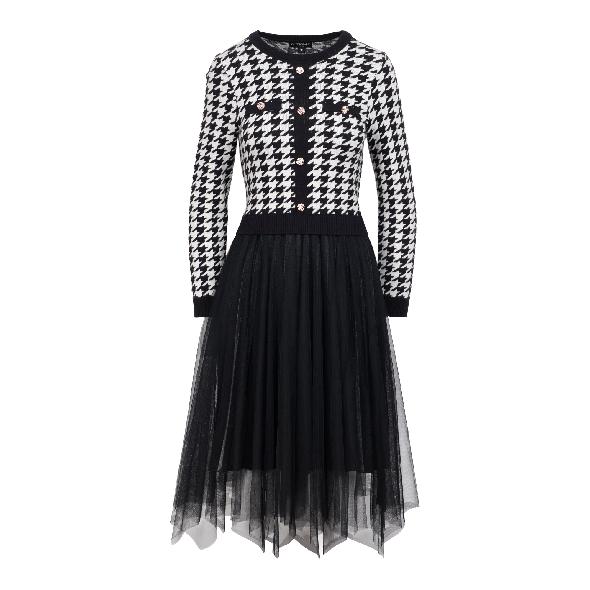 Ladies Hounds-tooth Mesh Combo Knitwear Dress