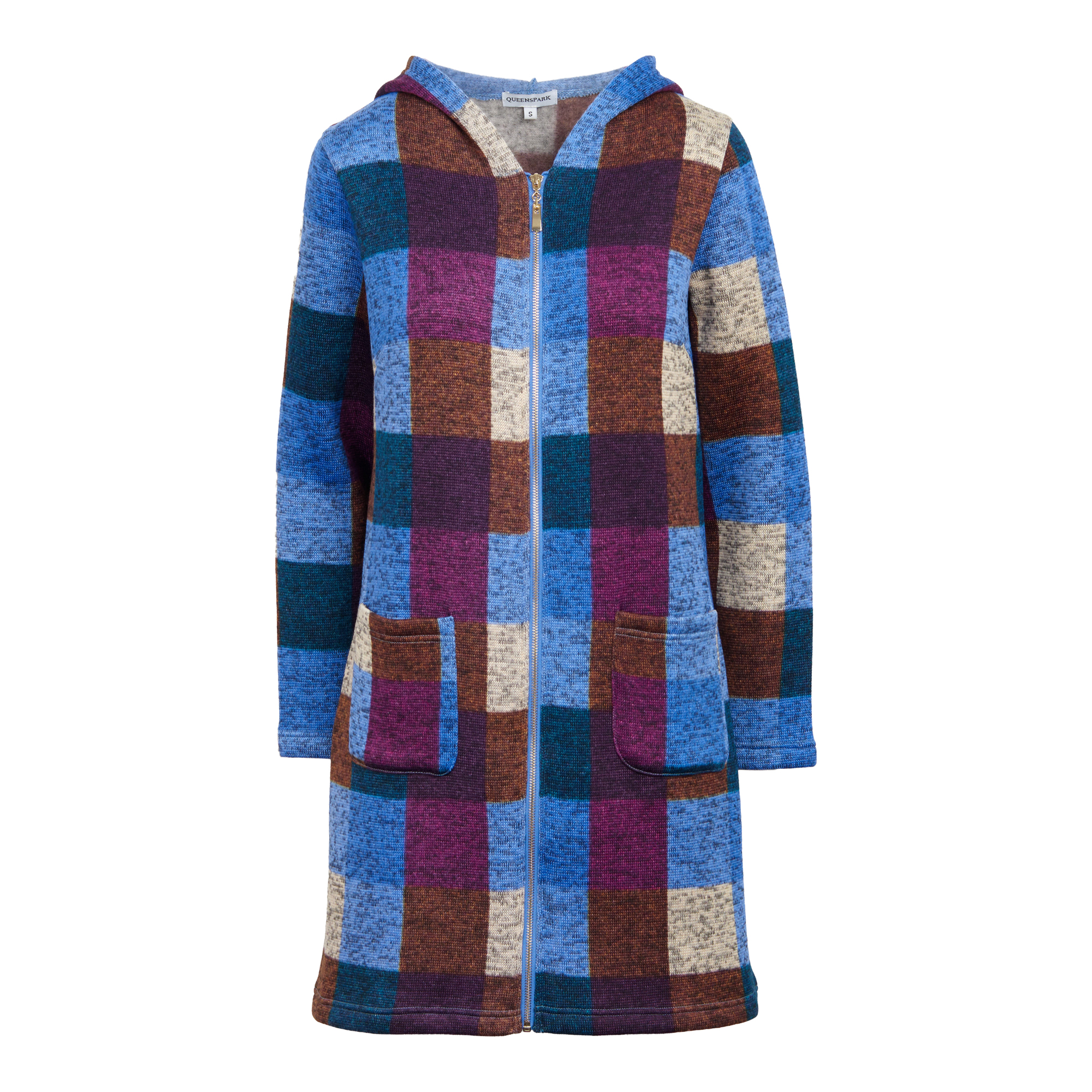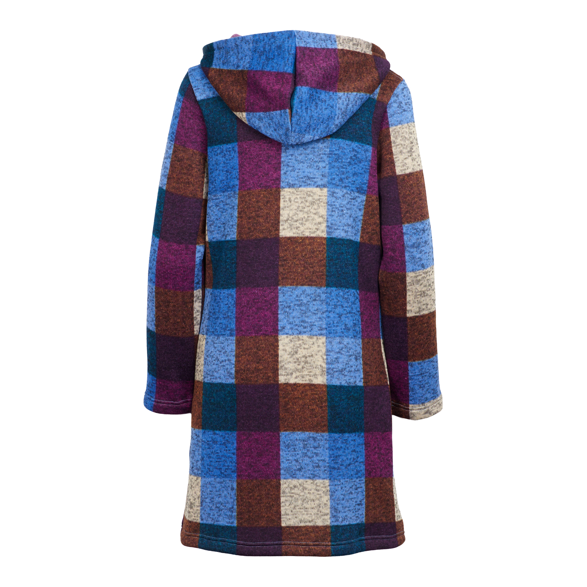 Ladies Knit Check Design Hood Coat