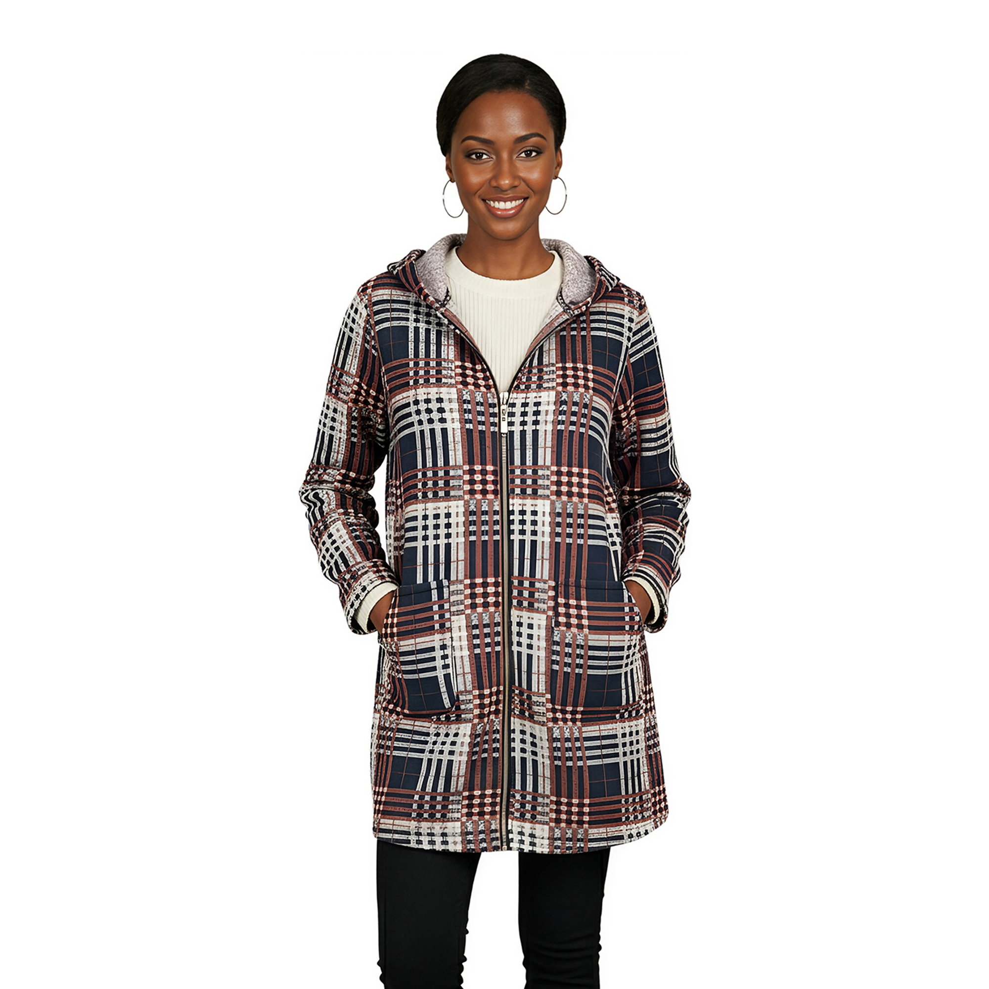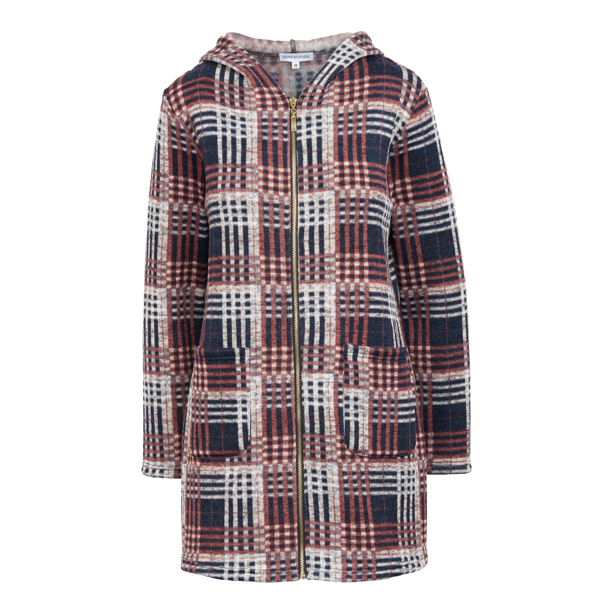 Ladies Knit Hooded Check Coat