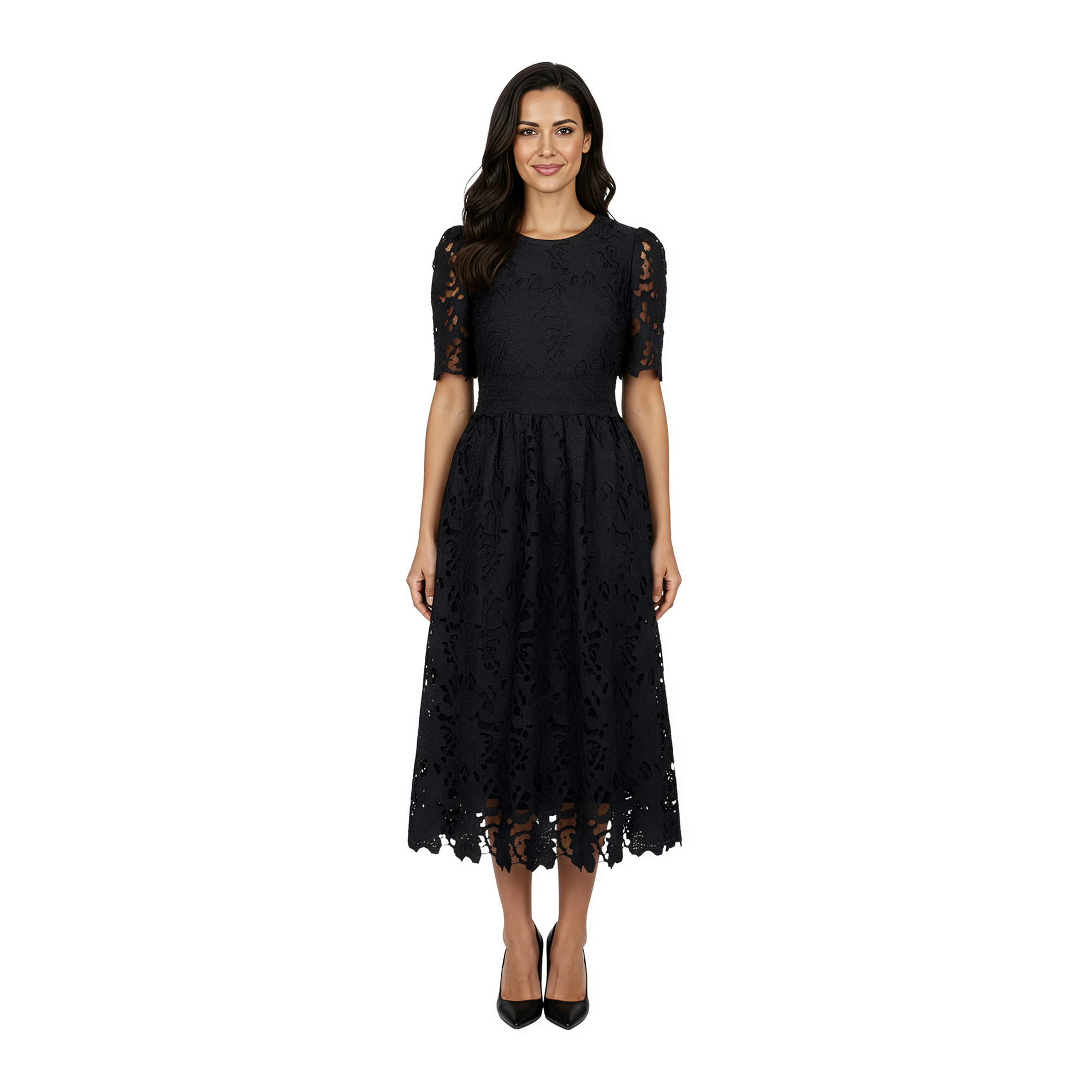 Ladies Short Sleeve Floral Lace Maxi Woven Dress
