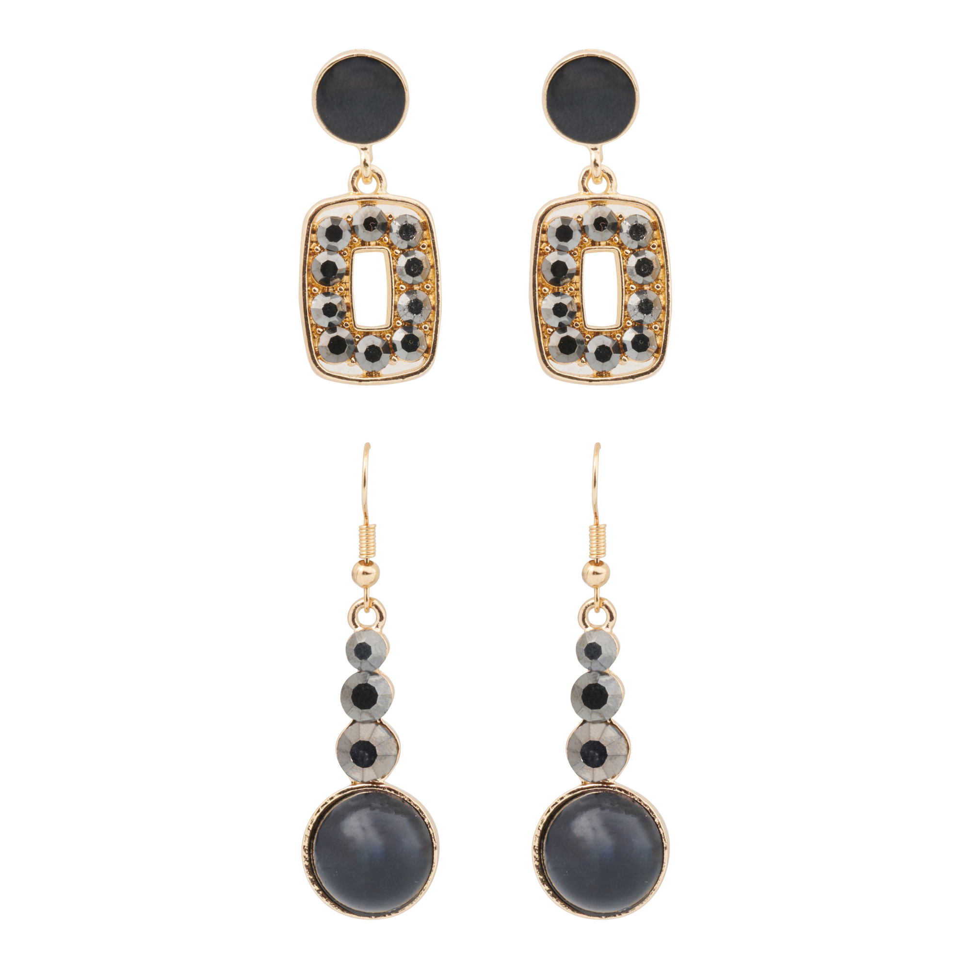 Lds 2pk Marquisite Drop Earring - Black/Col