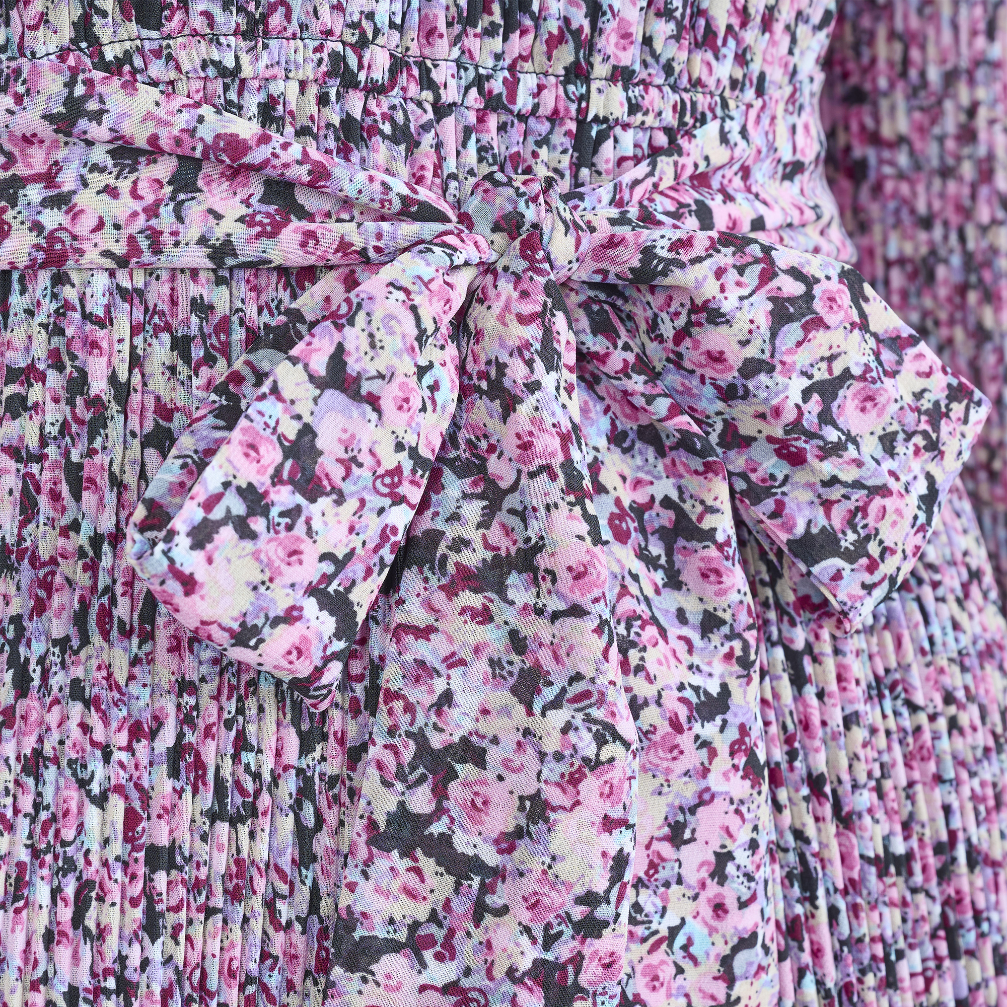 Lds 3/4 Sleeve Ditsy Printed Woven Chiffon Dress - Pink/Col