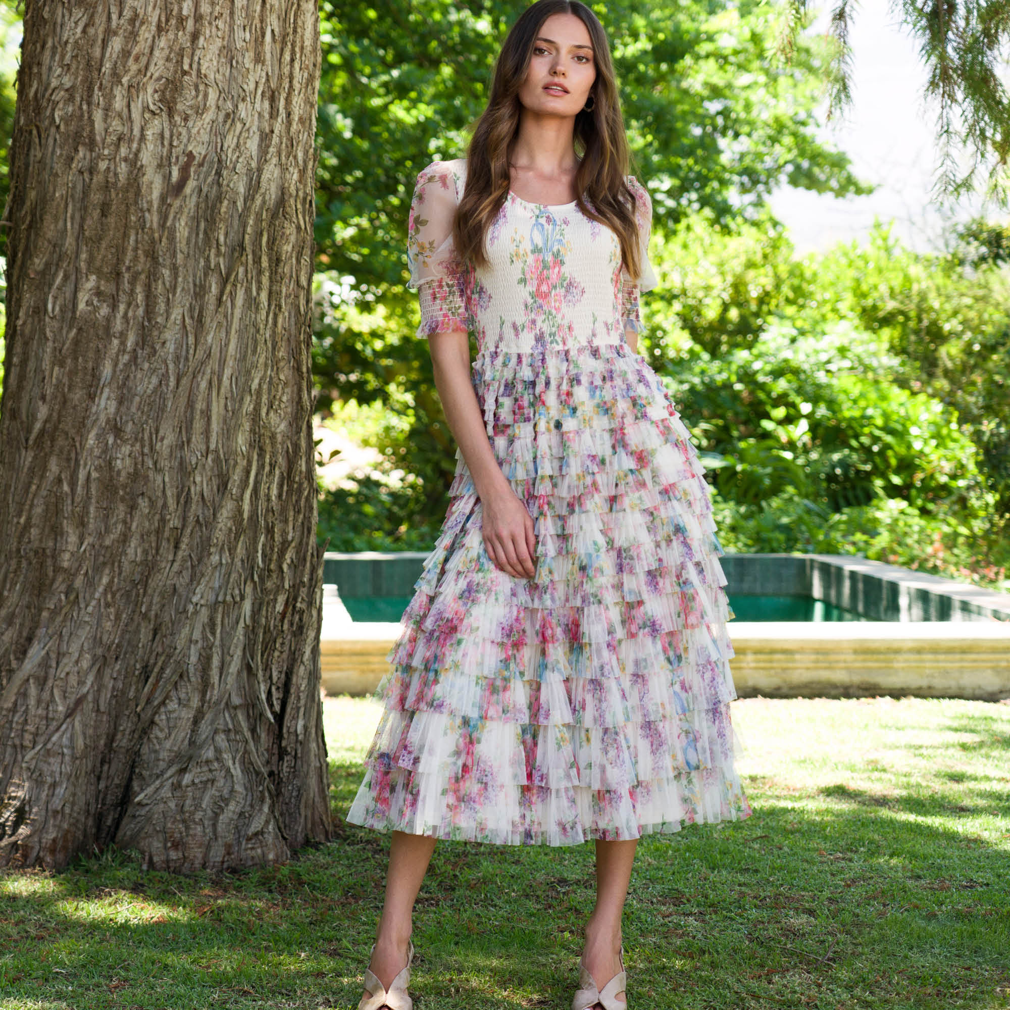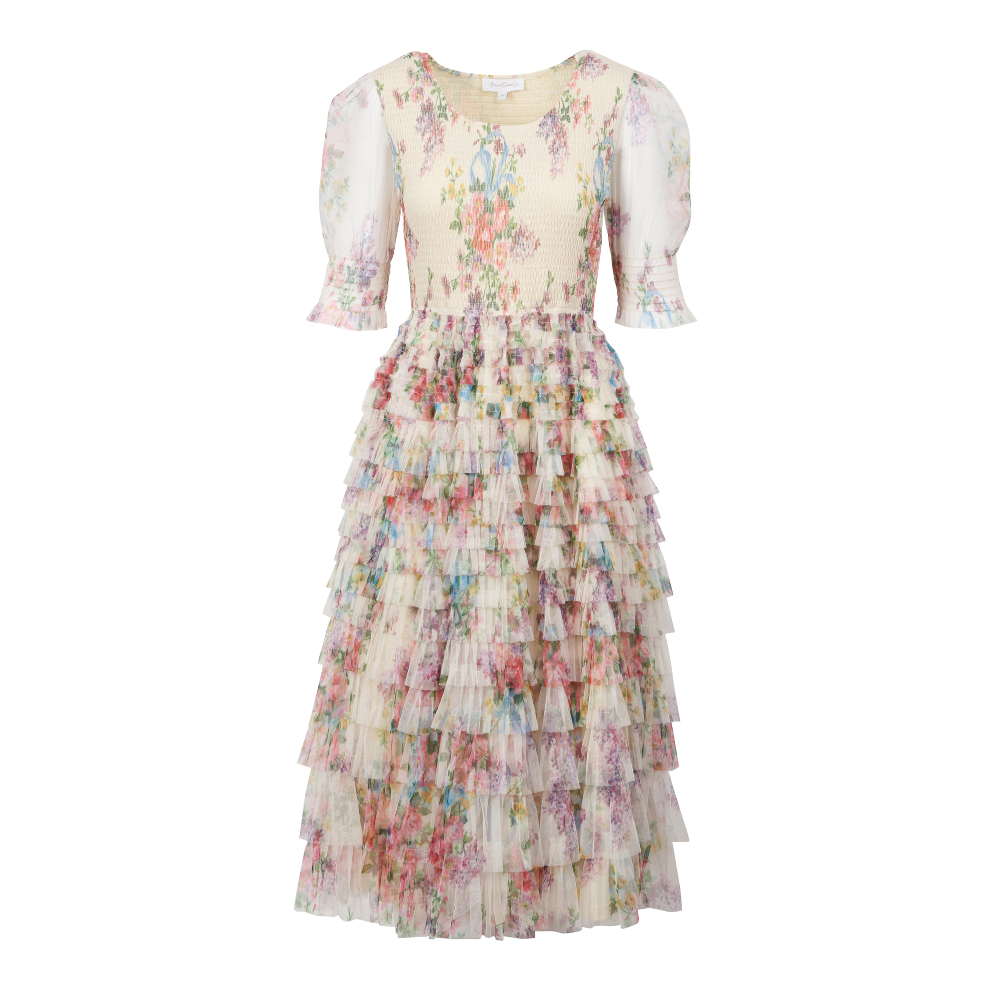 Lds Floral Tiered Mesh Knit Dress quantity