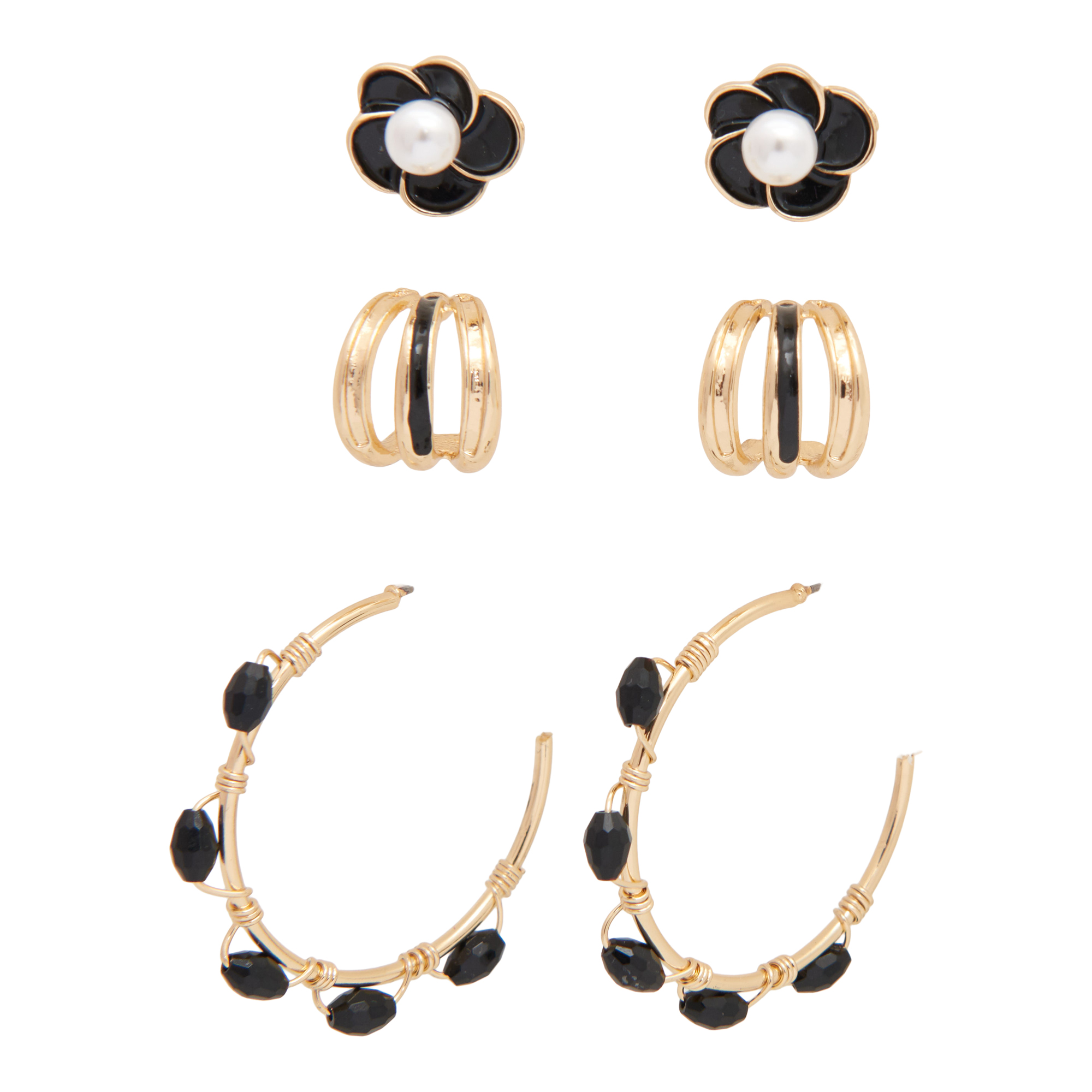 Lds 2pk Marquisite Drop Earring - Black/Col