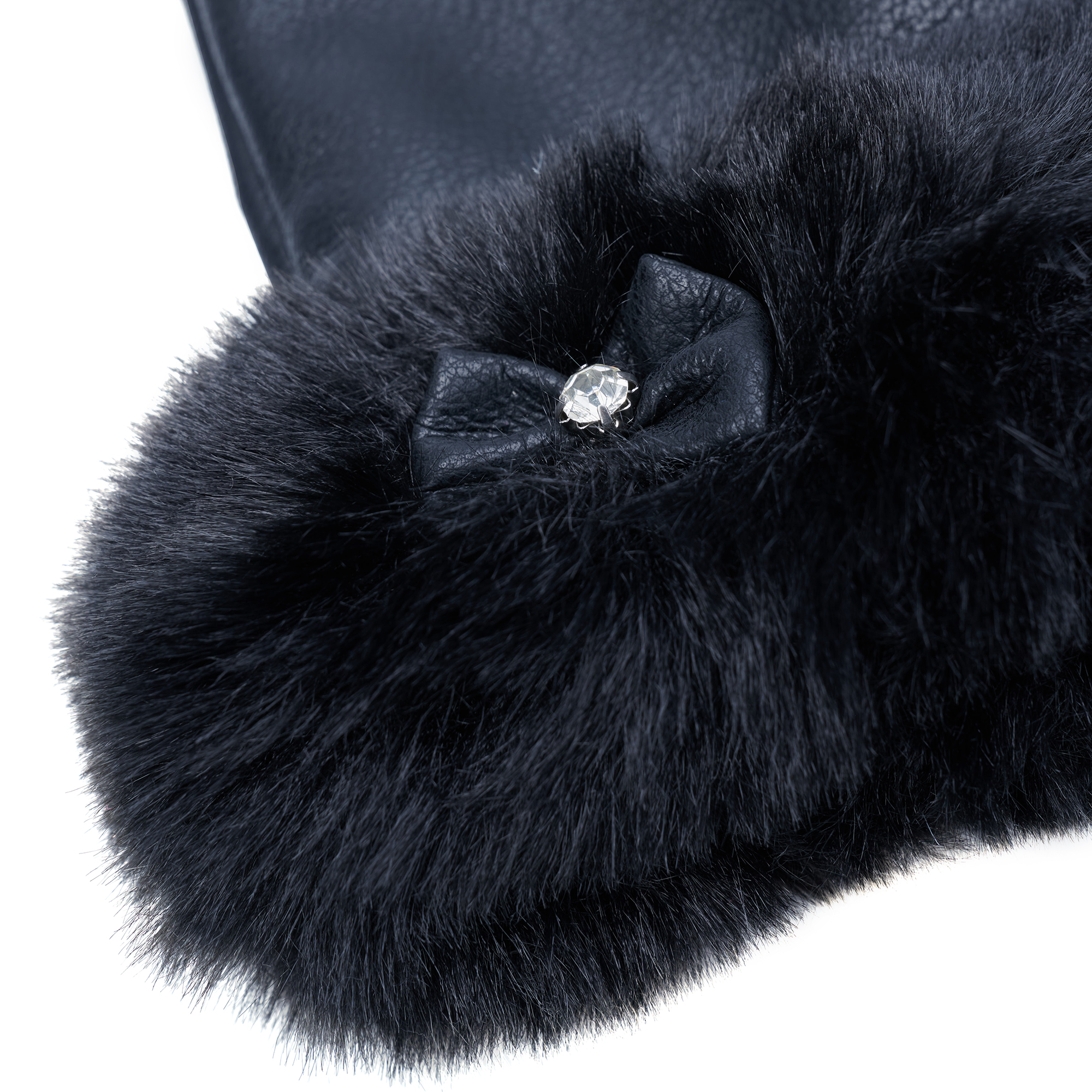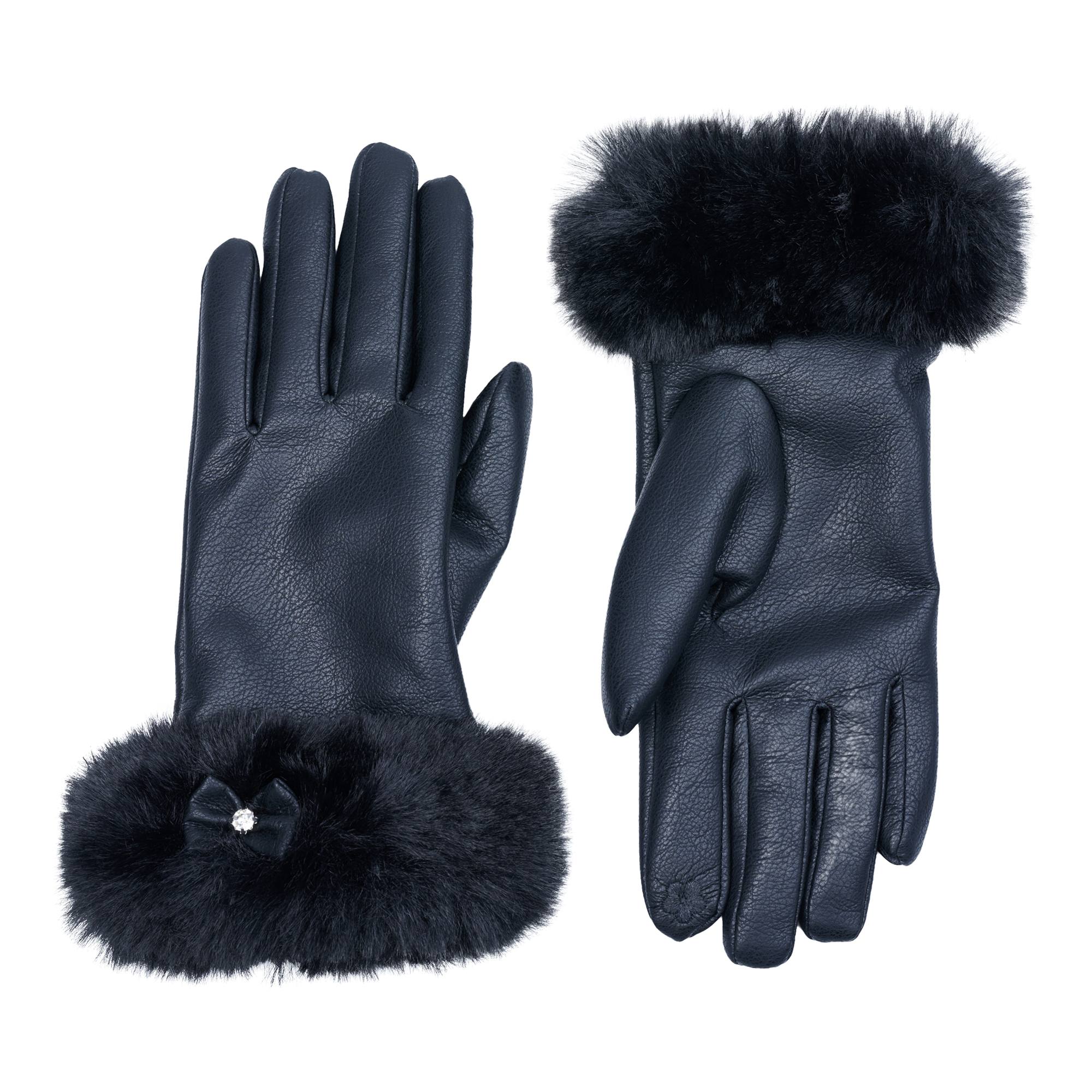 Lds Knit Bow Detail Pleather Gloves quantity
