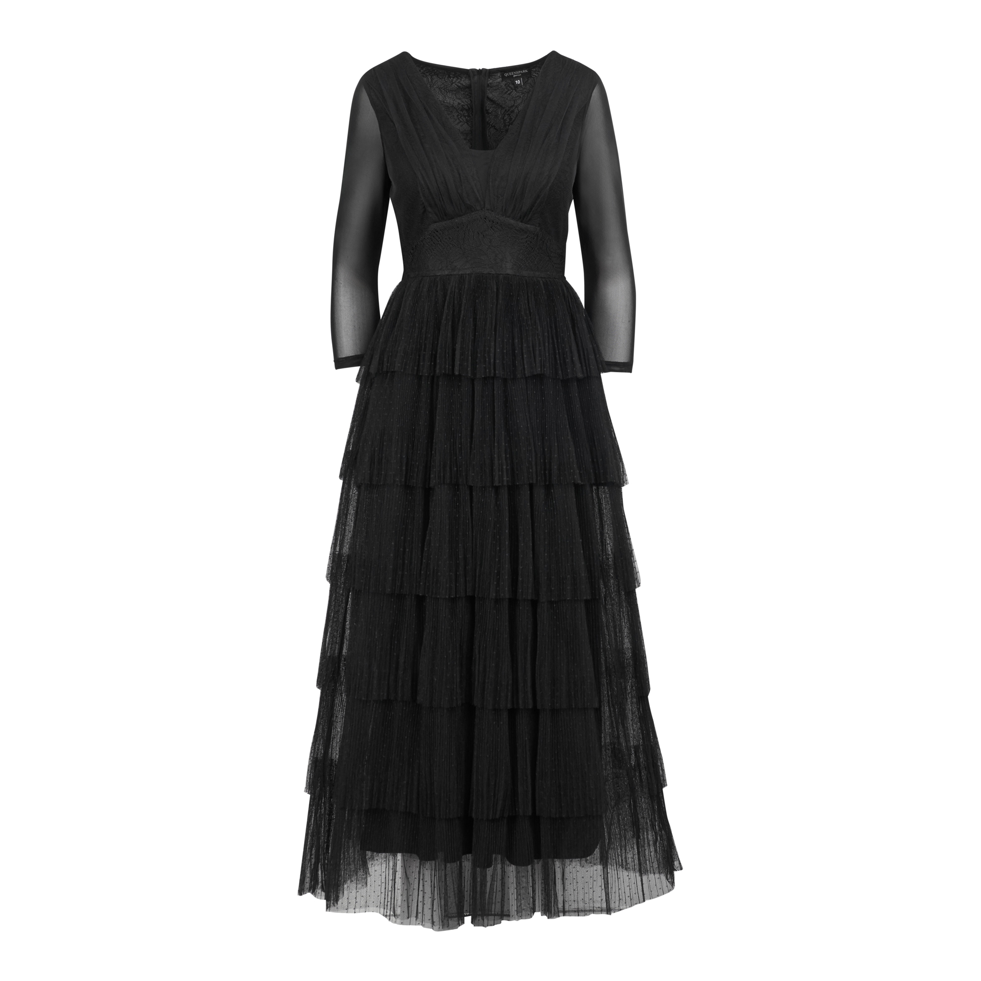 Lds 3/4 Double Bell Sleeve Shift Knit Dress - Black