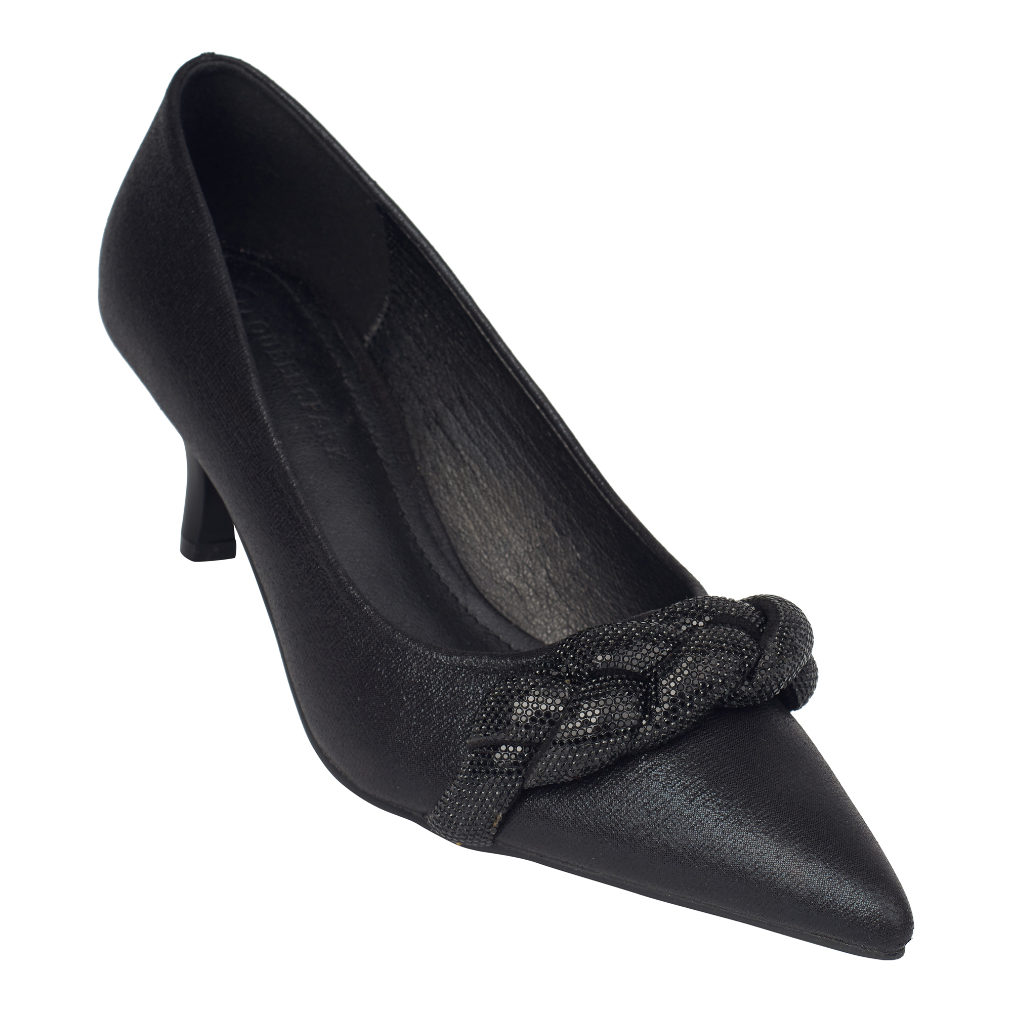 Lds shimmer lurex court shoe with twist trim quantity