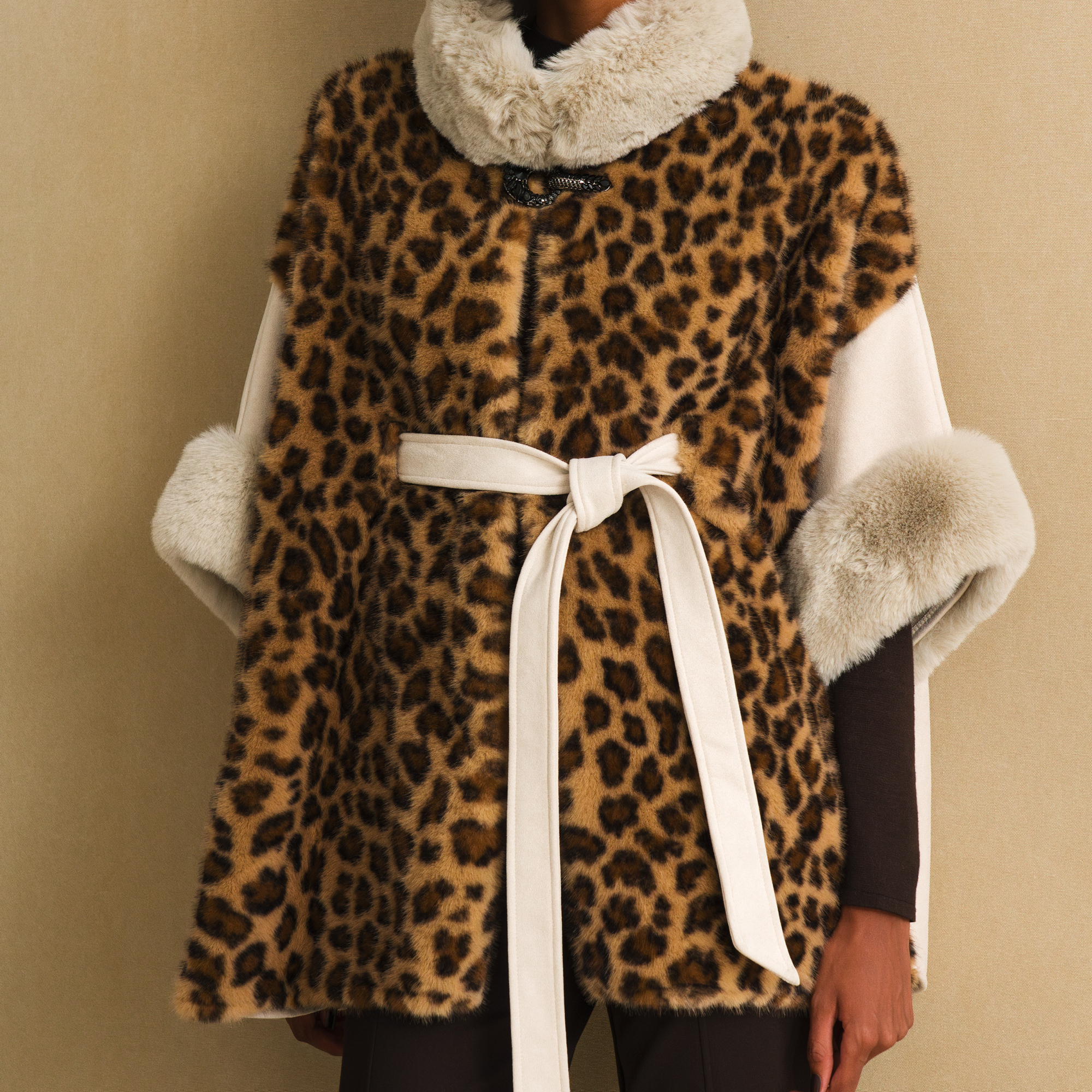 Lds Woven Animal Combo Faux Fur Cape