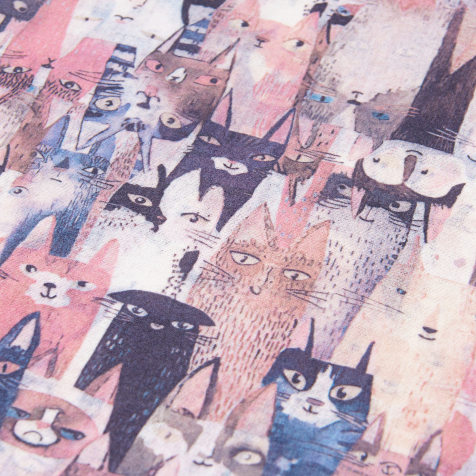 Lds Woven Cat Print Warm Handle Scarf
