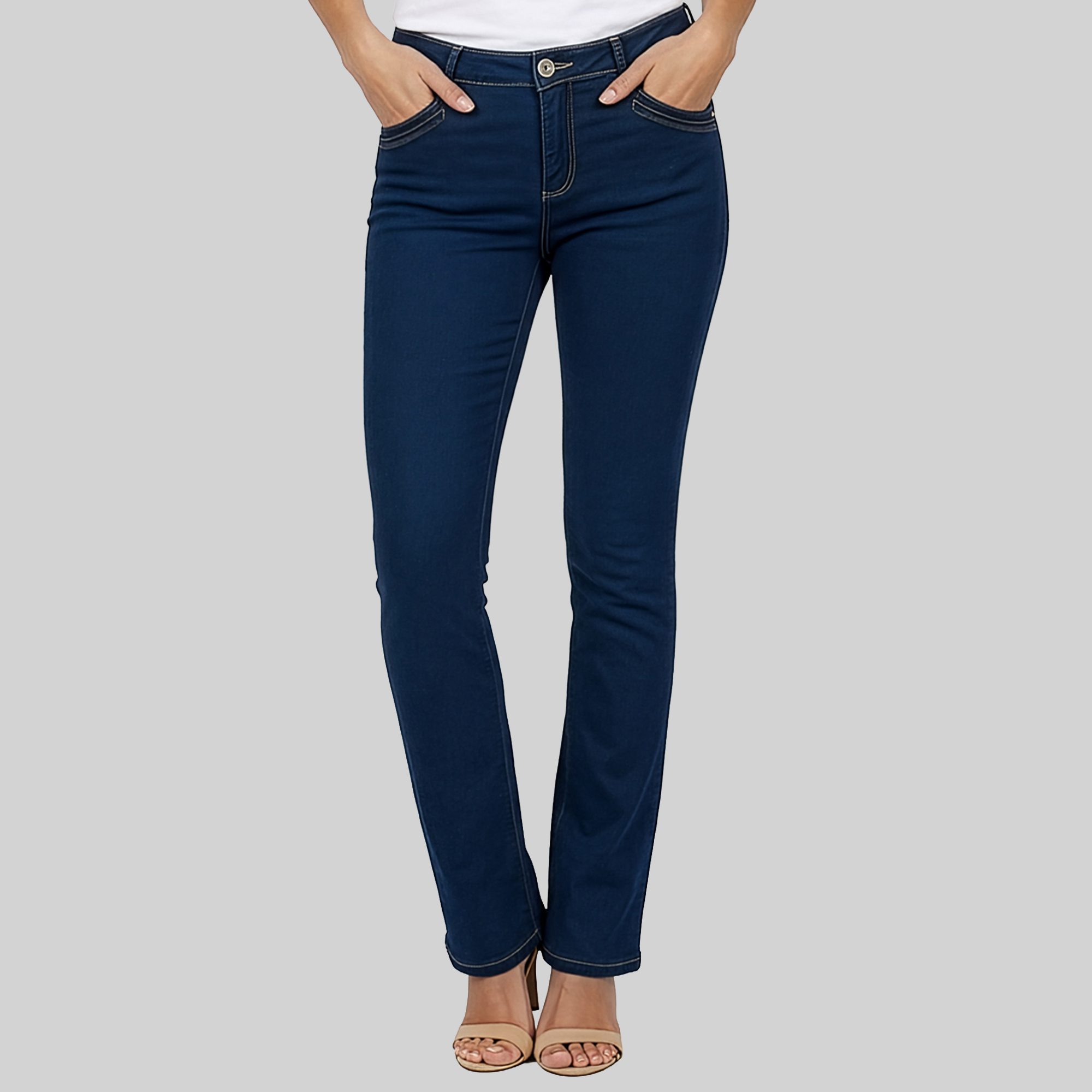 Lds Woven Bootleg Tramline Denim Jean - Blue