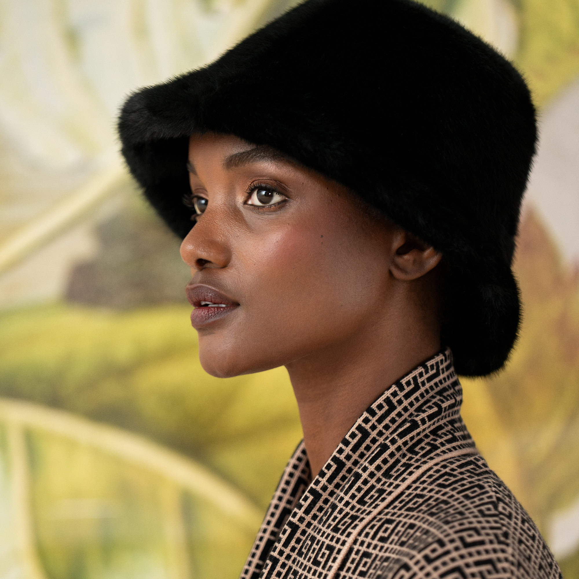 Lds Woven Faux Fur Bucket Hat