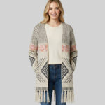 Lds Knitted Border Print Coatigan - Grey