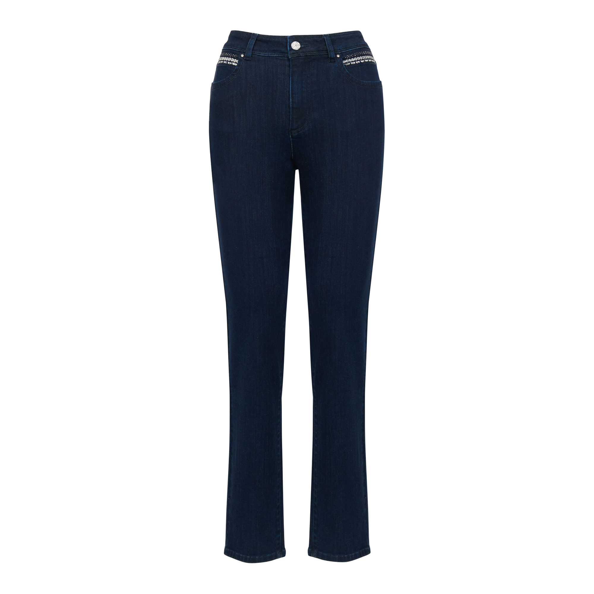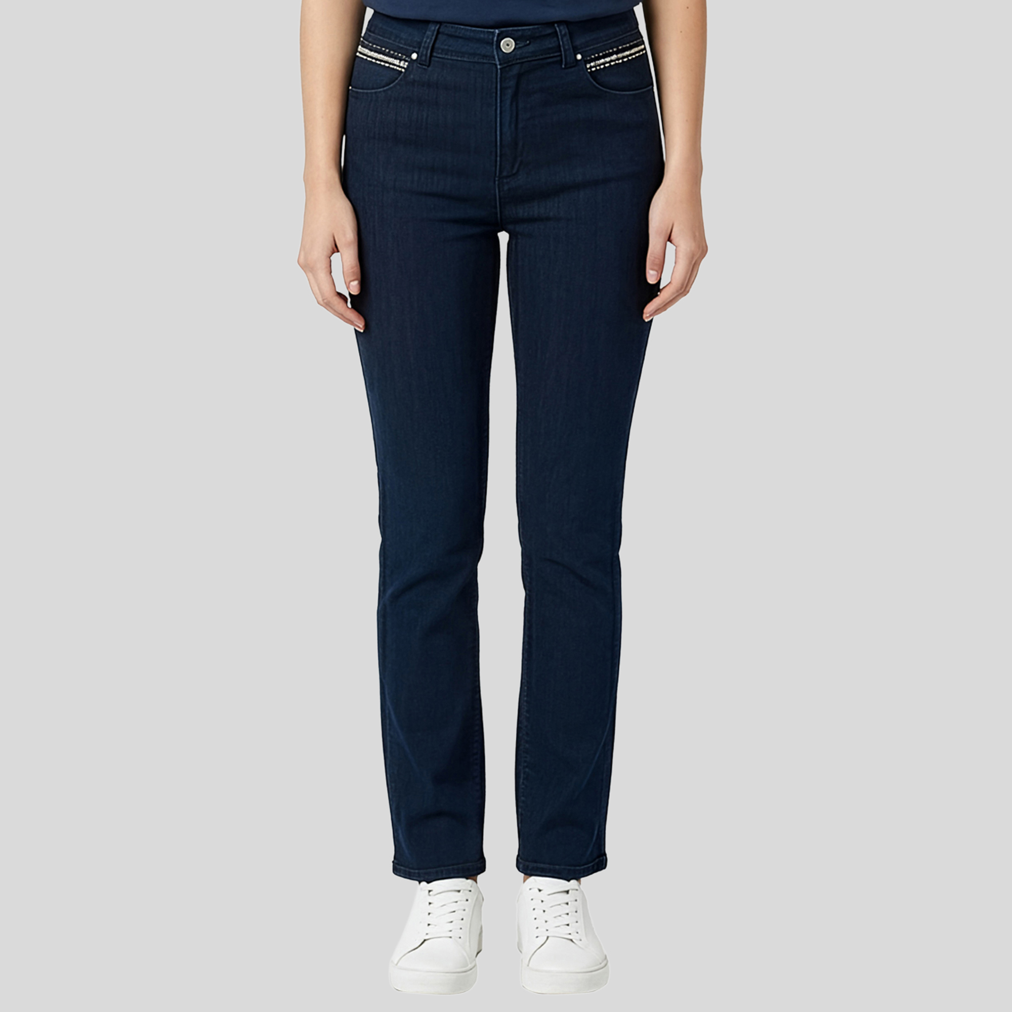Lds Woven Embellished Pocket Denim Jean - Indigo