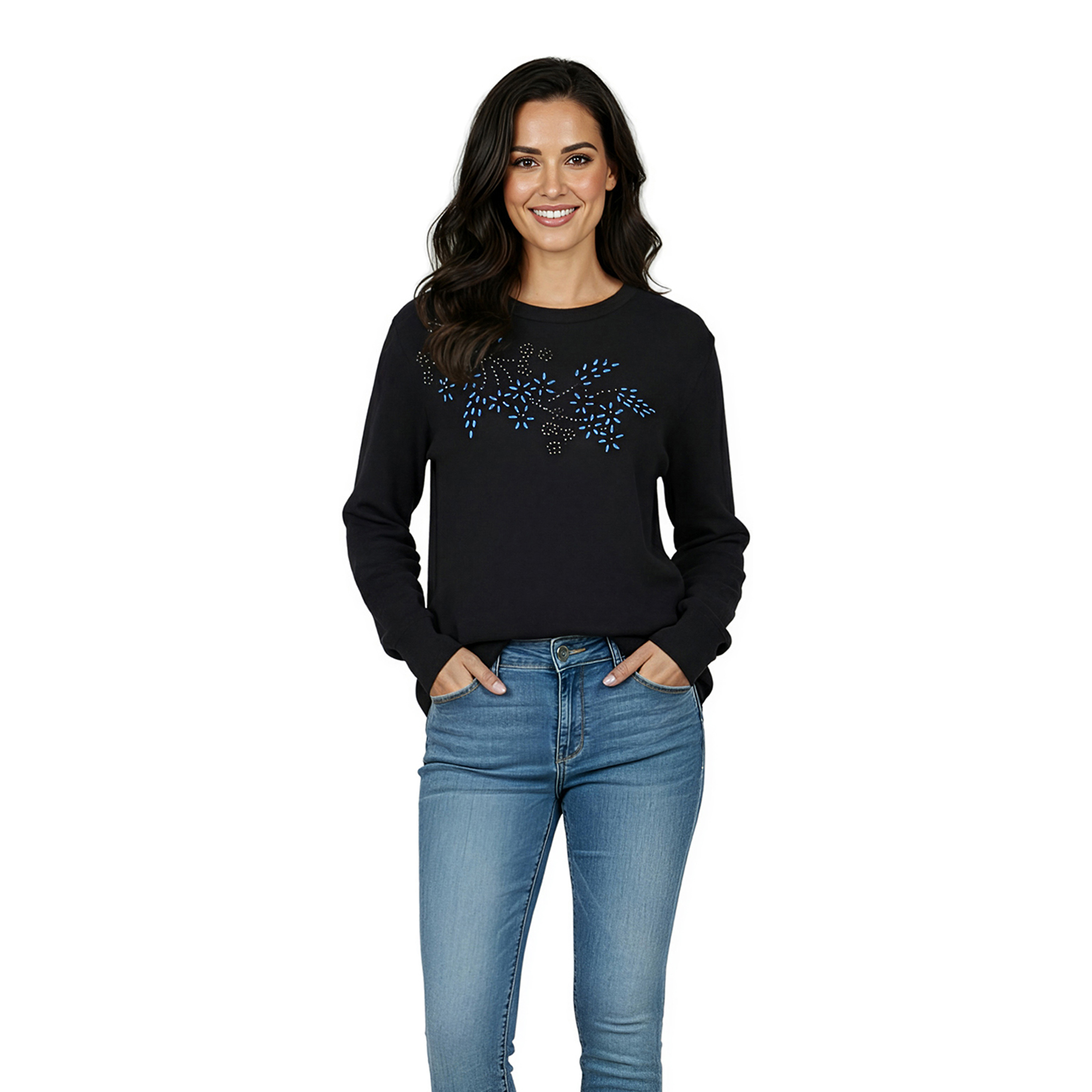 Lds Embellished Batwing Kniwear Jersey - Black