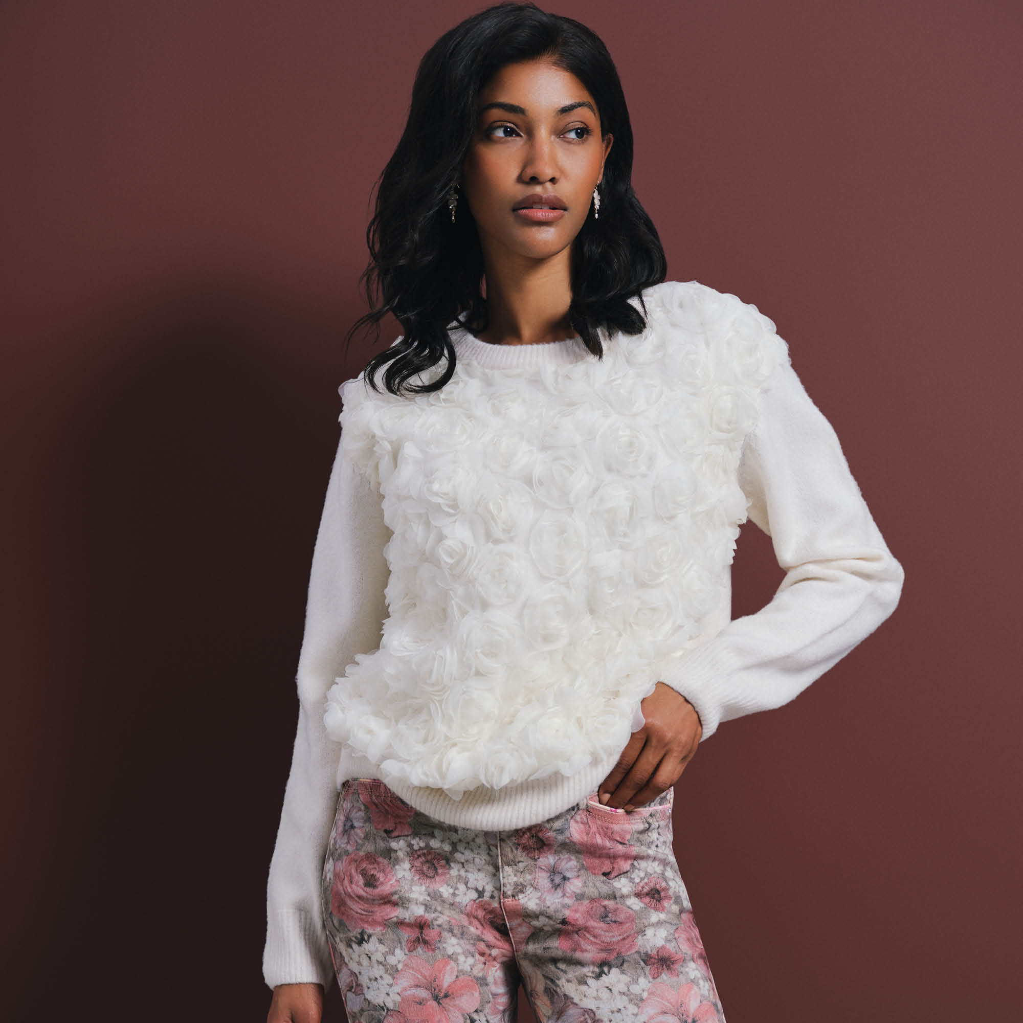 Lds Long Sleeve Knitwear Jersey & Flower Detail quantity