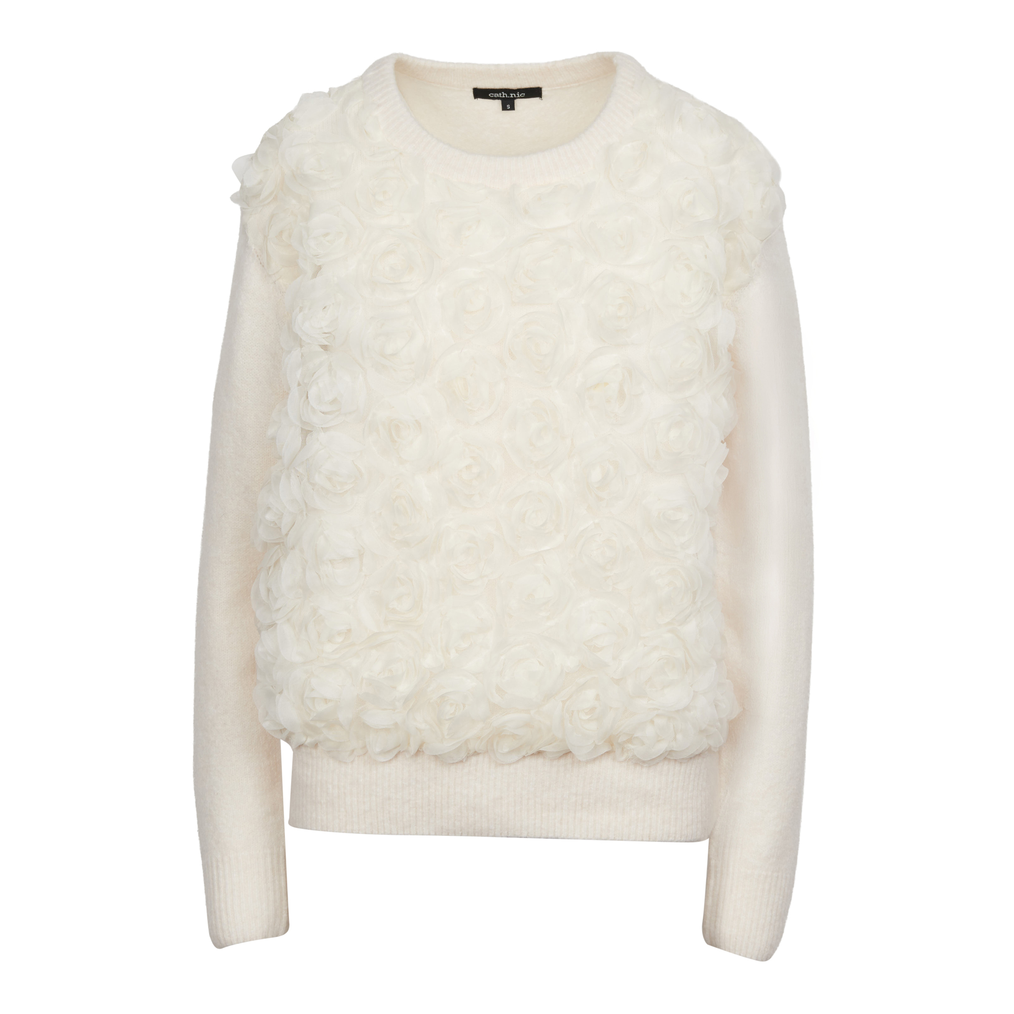 Lds Long Sleeve Knitwear Jersey & Flower Detail - Cream