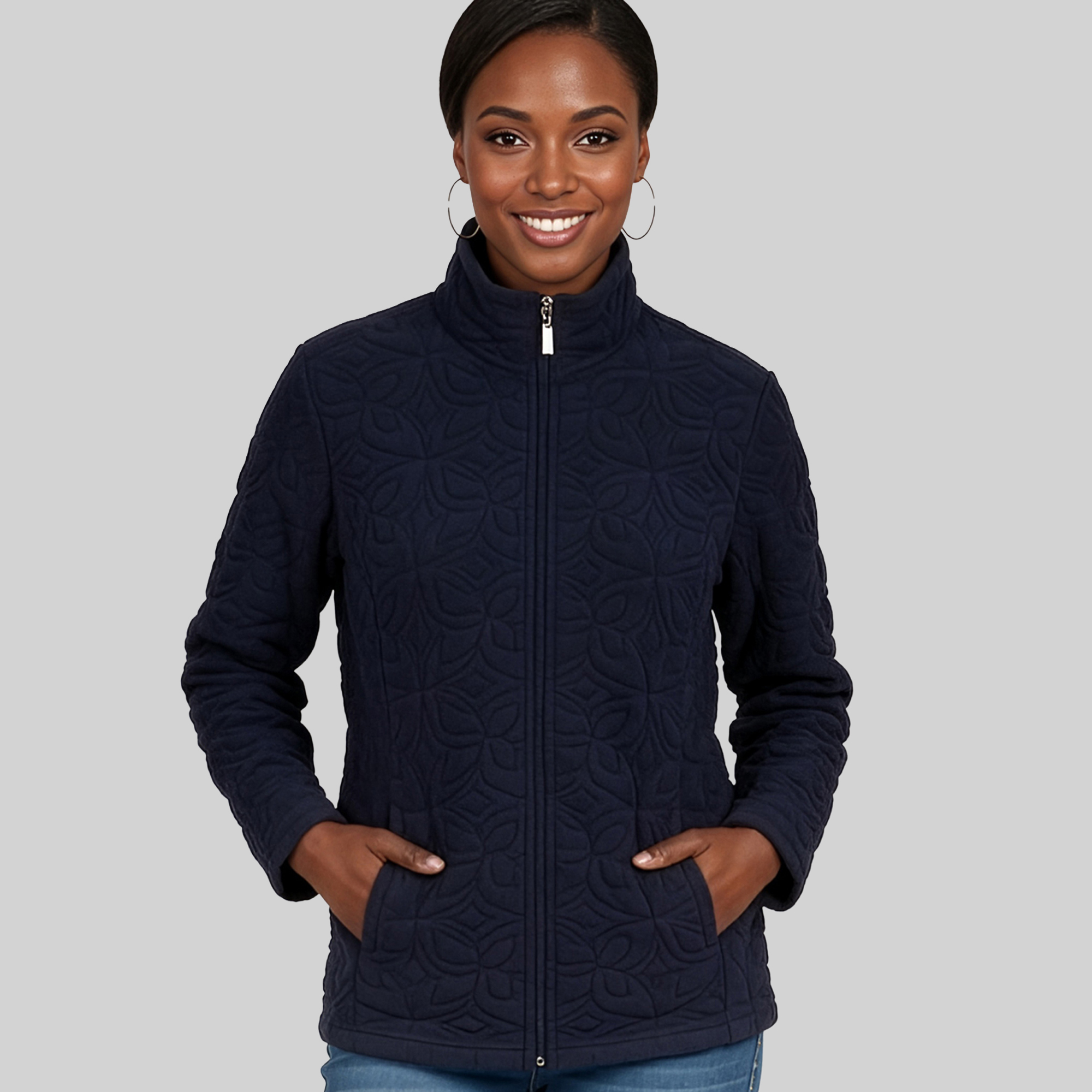 Ladies Quilted Long Sleeve Knit Polar Fleece Jacket quantity