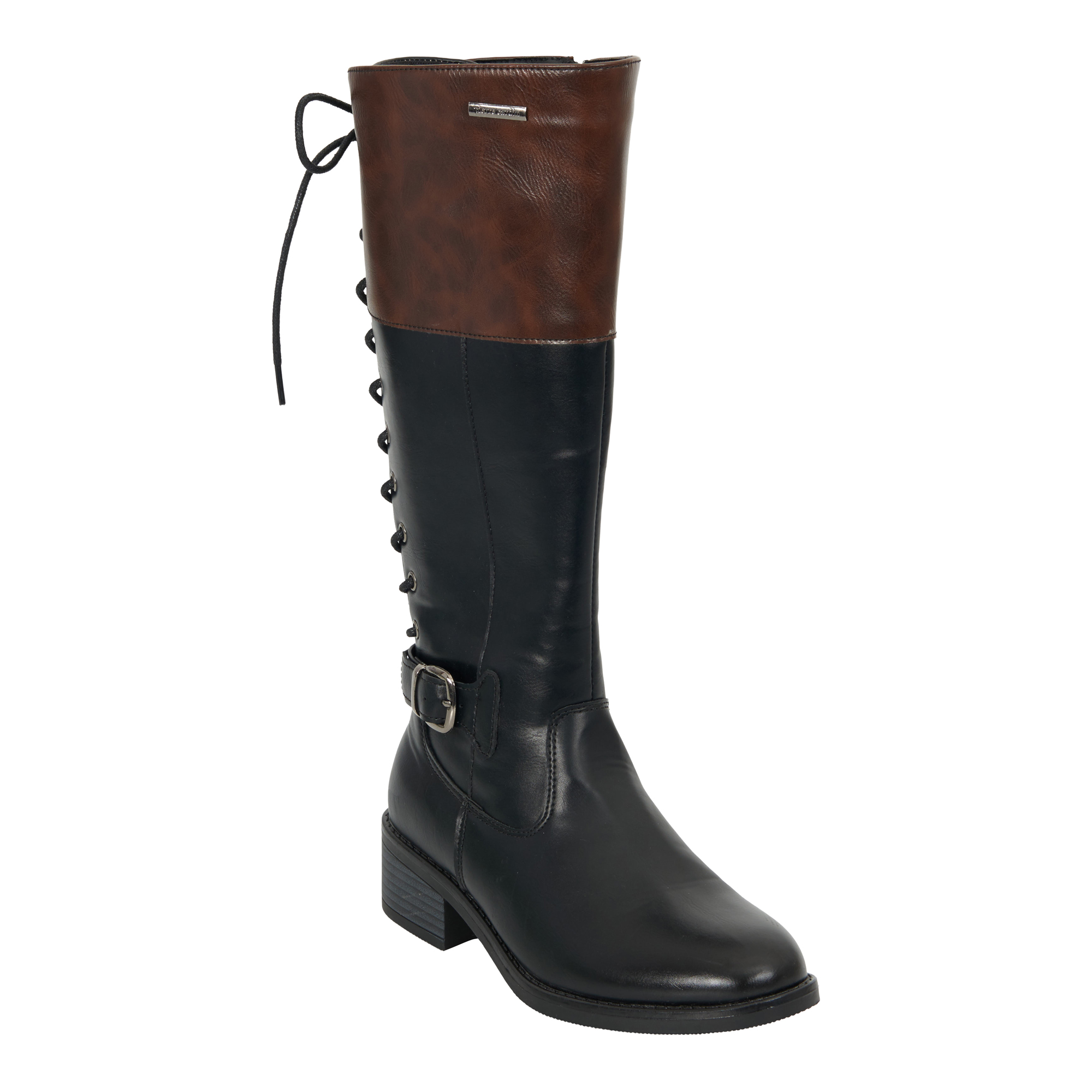 Lds Long Back Lace Up And Cuff Boot - Black/Col