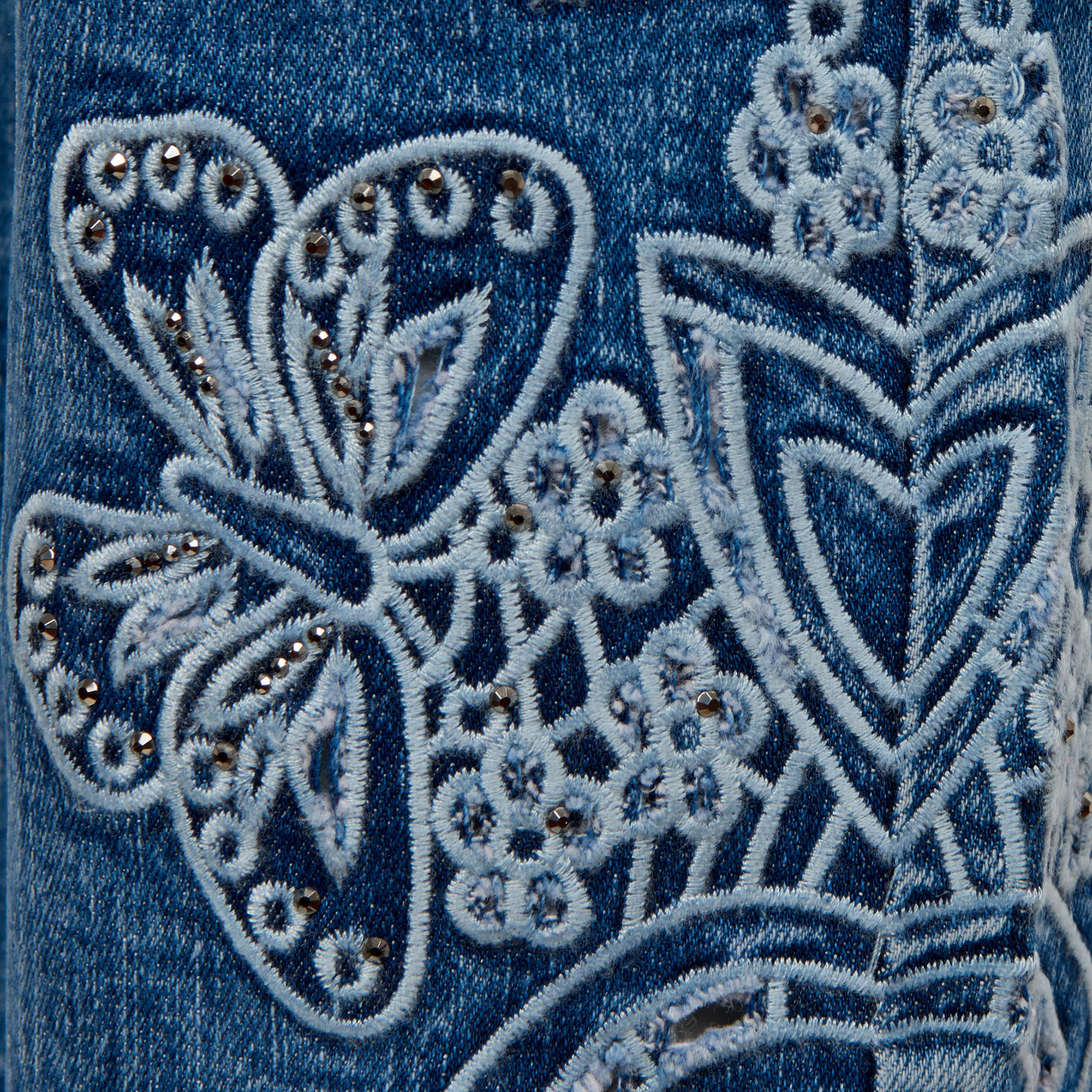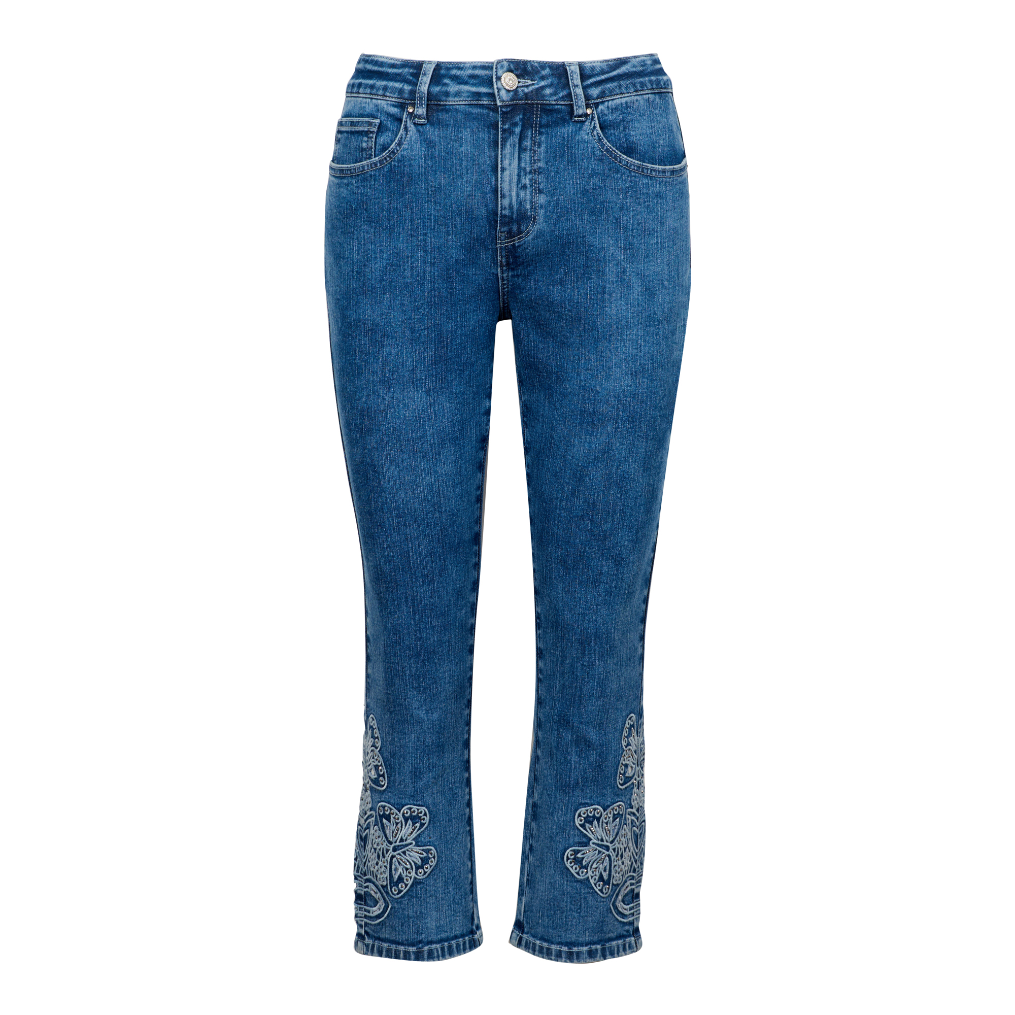 Butterfly Embroidered Hem Capri Jean quantity